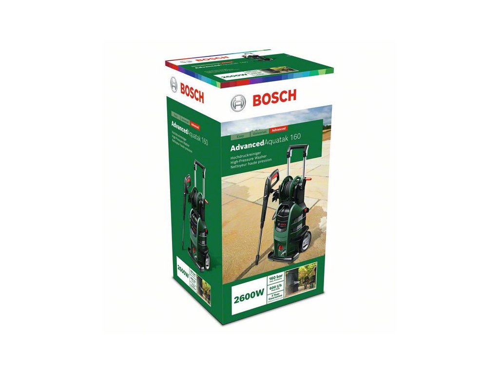 Az AdvancedAquatak 160 nagy teljesítményű tisztítás nyújt a Quad szivattyútechnológiának köszönhetően. A Quad szivattyú kiegészítő hengere rendkívüli teljesítményt biztosít, így a legnehezebb feladatok is gyorsabban elvégezhetők. A magasnyomású tömlődobnak köszönhetően a magasnyomású mosó zökkenőmentesen állítható össze. A rendkívül sokoldalú tisztítási teljesítményért több robusztus és tartós fúvókával rendelkezik. Nagyszabású és nehéz tisztítási feladatokhoz, úgymint falak, nagy járművek, teraszok, gépkocsibejárók, úszómedencék és hajók. Gyorszáras csatlakozók és a pisztoly használat közbeni rögzítése az egyszerű takarításért-