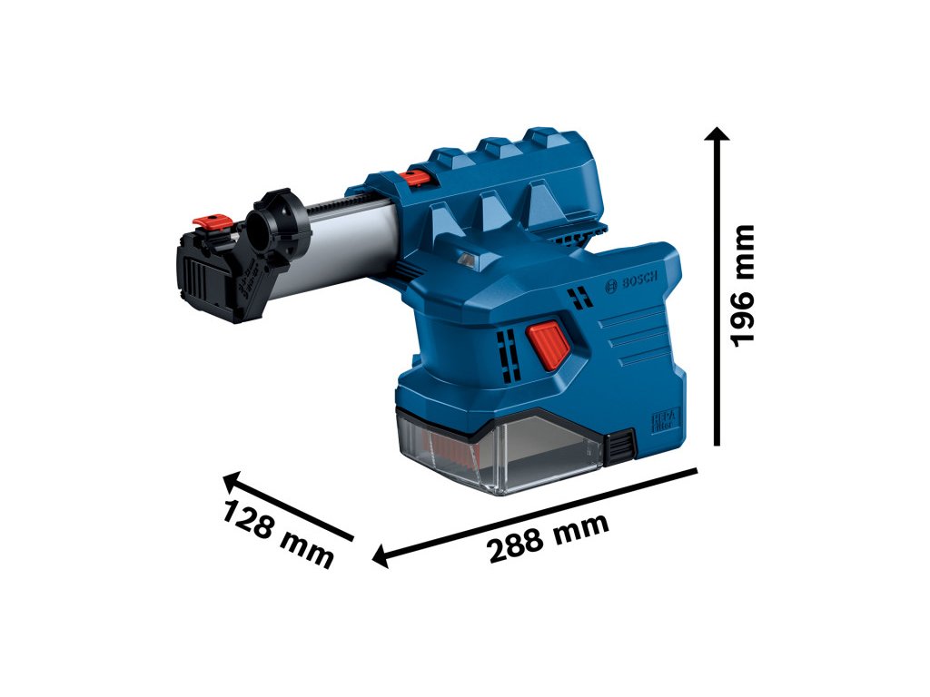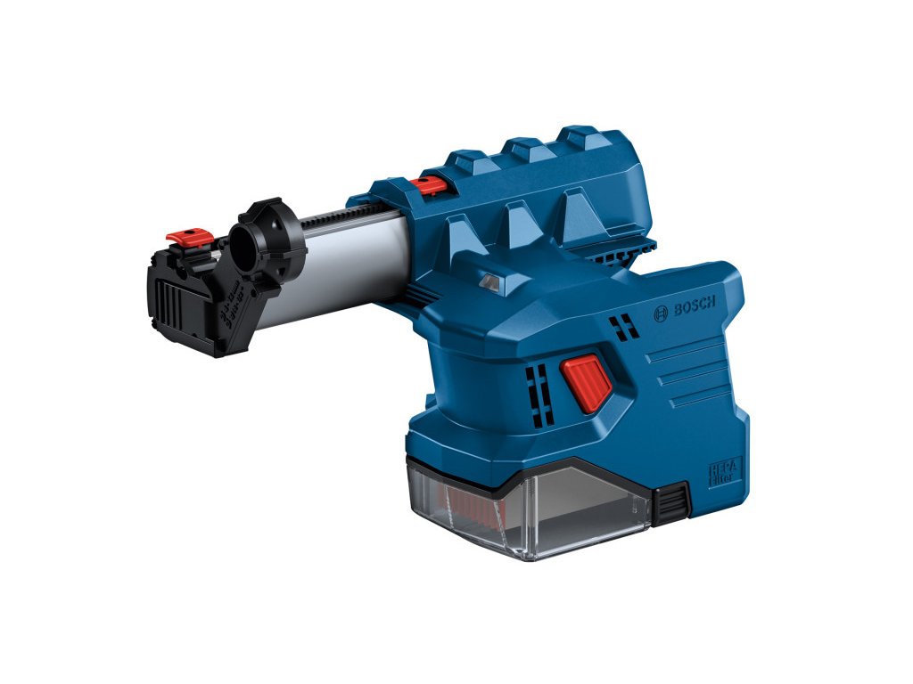 A GDE 12 Professional optimális akkus porelszívó rendszer a GBH 185-LI Professional fúrókalapácshoz, betonban és falazatban végzett munkákhoz. A por optimális összegyűjtéséről gondoskodó HEPA filter eltávolítja a 0,3 mikrométernél nagyobb porrészecskék 99,97%-át. Ez a porelszívó Auto Power funkcióval rendelkezik, amely bekapcsol fúrás esetén, és kikapcsol két másodperccel a fúró kapcsolójának elengedése után.