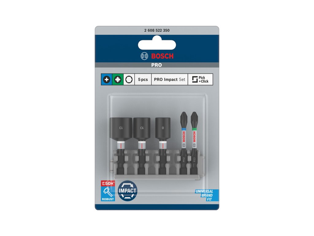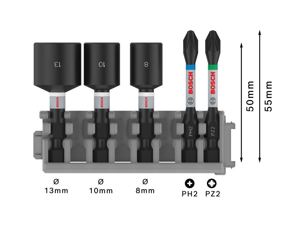 BOSCH PRO Bithegy és csavarbehajtó klt. 5 részes 50 mm (PH2,PZ2 / 8,10,13 mm) Pick & Click
