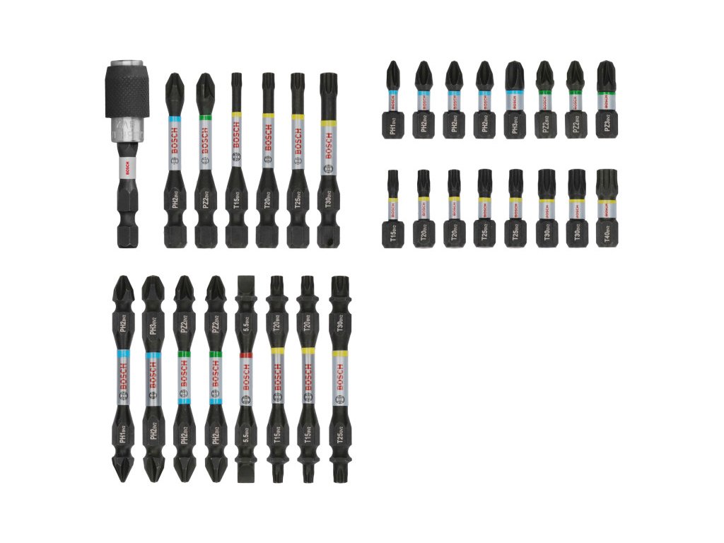 25 mm-es csavarbit:PH1; PH2 (3 db); PH3|PZ2 (2 db); PZ3|T15; T20 (2 db); T25 (2 db); T30 (2 db); T40