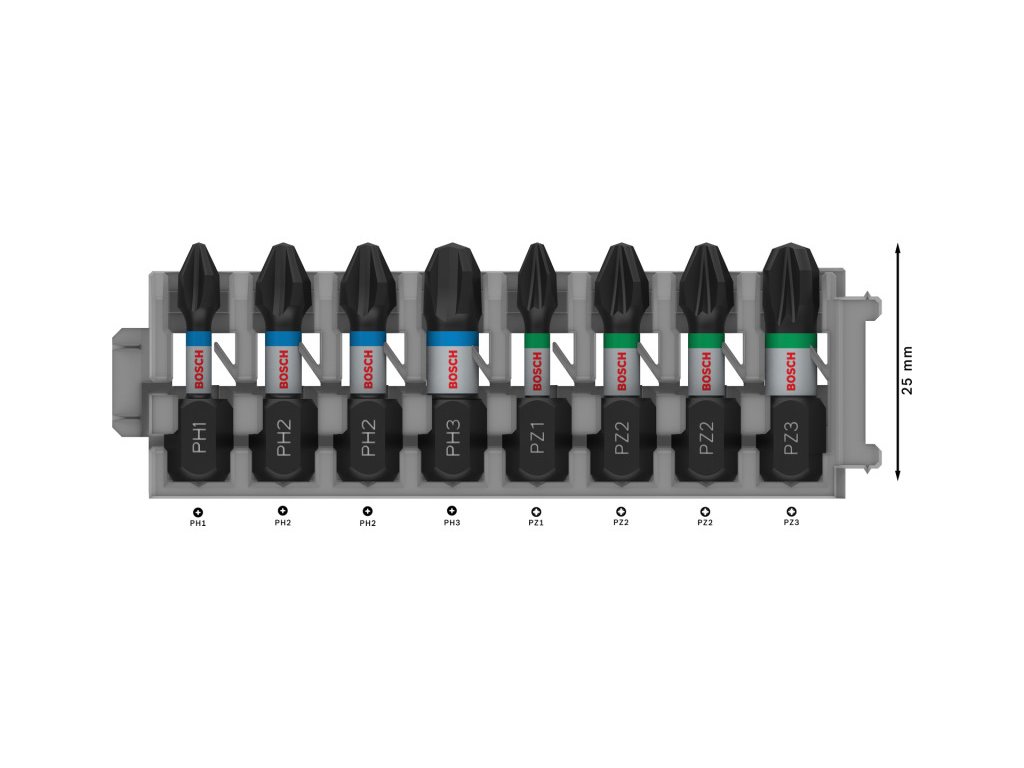 BOSCH PRO Bithegy készlet 8 részes 25 mm (PH1, PH2 x 3, PH3, PZ2 x 2, PZ3) Pick & Click