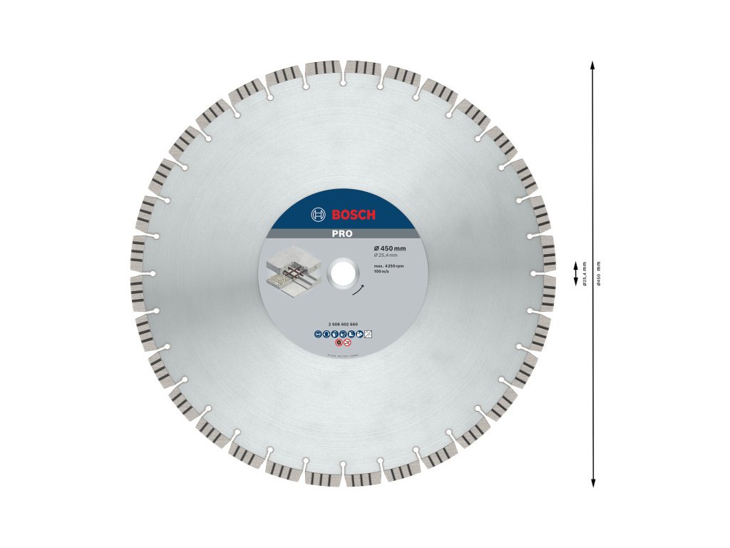 BOSCH PRO Diamantový rezný kotúč 450 x 3,6 x 12 x 25,4 mm segmentový