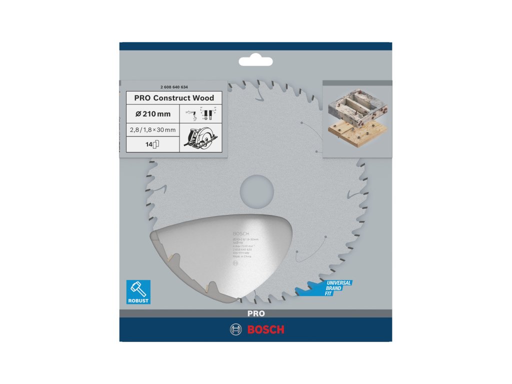 BOSCH PRO Fűrésztárcsa fához 210 x 30 x 2,8 mm / 14T Construct Wood