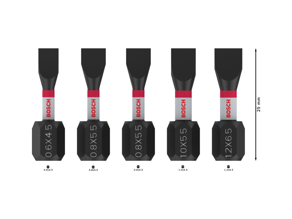 Sada bitov BOSCH PRO Impact 5 kusov 25 mm (SL4,5/SL5,5x3/6,5x1ks) 1/4 imbus