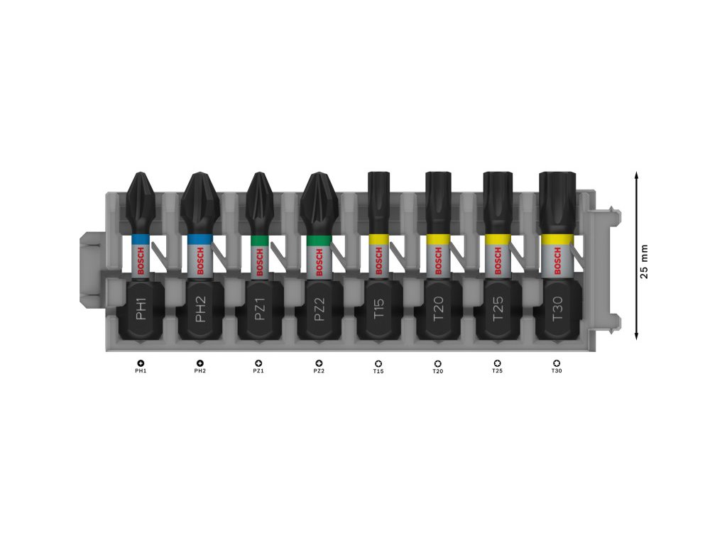 Sada bitov BOSCH PRO Impact 8 dielov 25m (PH1/PH2/PZ1/PZ2/T15/T20/T25/T30) 1/4 imbus