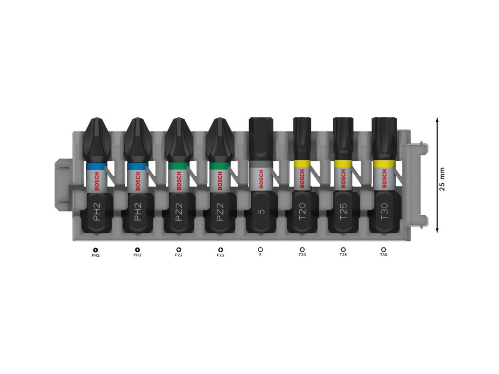 Sada bitov BOSCH PRO Impact 8 dielov 25m (PH2x2 / PZ2x2 / H5/T20/T25/T30x1 ks) 1/4 imbus