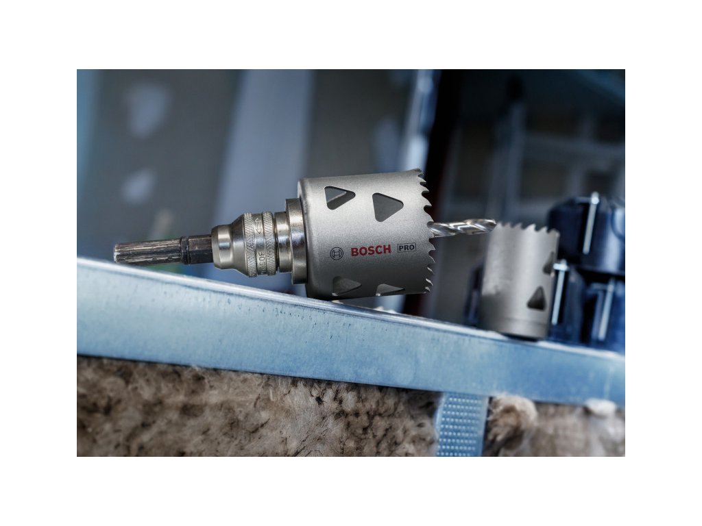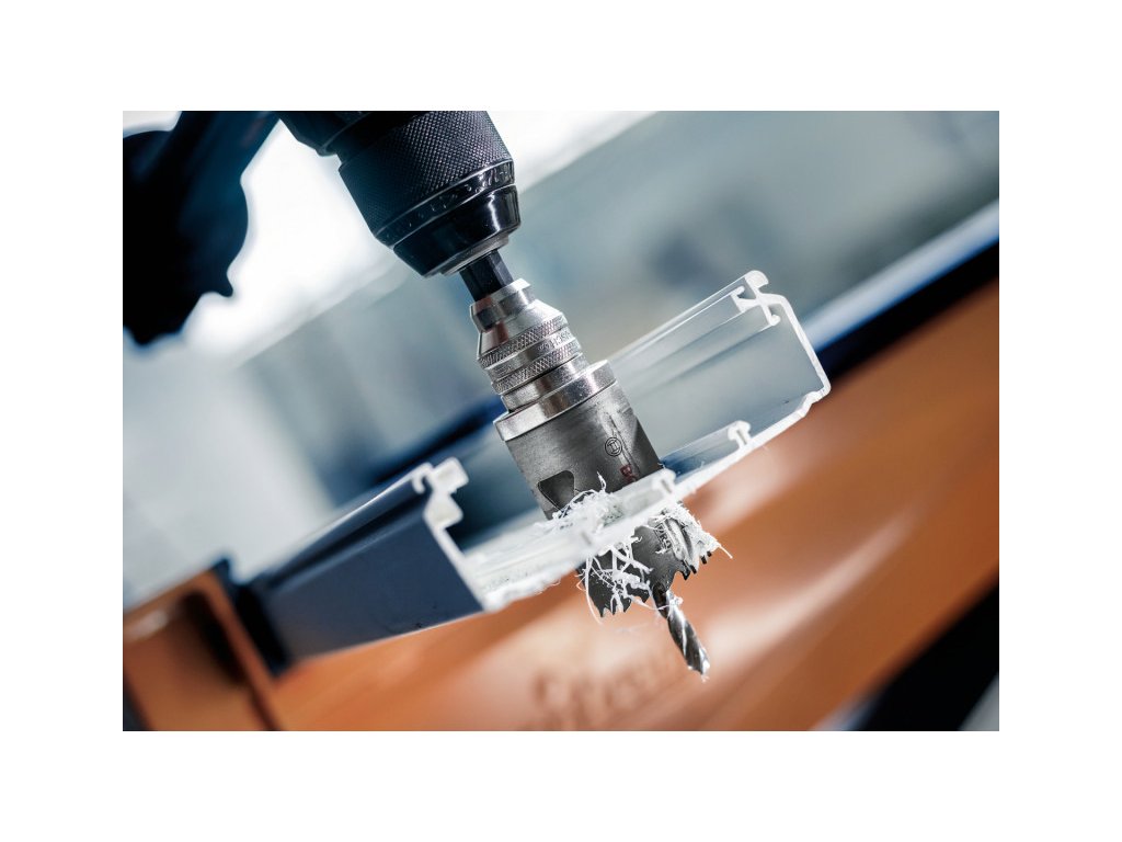 A PRO Multi Material továbbfejlesztett fogkialakítással rendelkezik a gyors és sima vágásokhoz, a hosszú élettartam érdekében magas kobalttartalmú HSS ötvözetből készült fogakkal. Hatékony körkivágást tesz lehetővé acélburkolatban és gipszkartonban. A Power Change Plus gyorsabbá teszi a körkivágók és a központosító fúrószárak cseréjét, és megkönnyíti a furatmag eltávolítását.