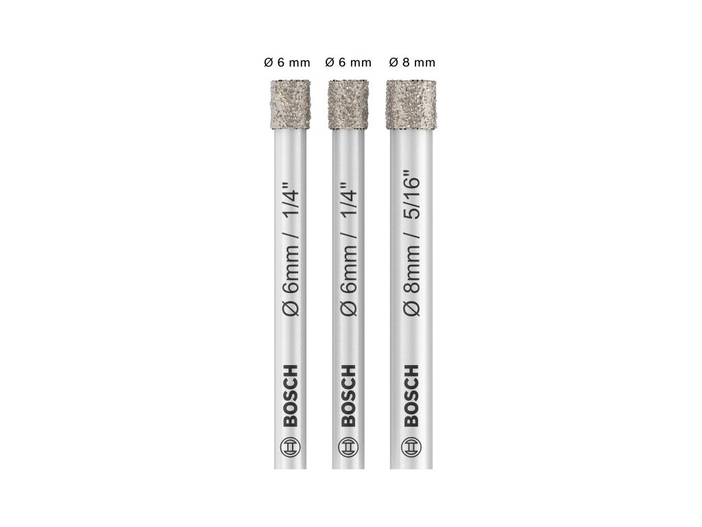 BOSCH PRO Száraz gyémántfúró készlet 3 részes (6 / 6 / 8 x 66 mm) hengeres befogással