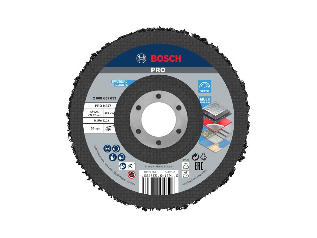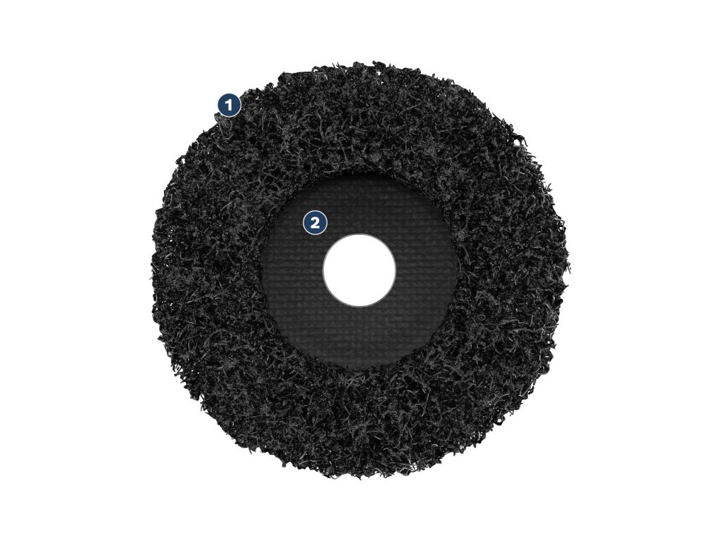 A PRO N377 tisztítókorong nyitott szerkezetű, hogy a rozsda, a festékpor és a forgács ne tömítse el a korongot. Ez azt jelenti, hogy gyorsabban és hatékonyabban dolgozhatsz. A korongot gyantával impregnáltuk, így az a fémen kívül más anyagok tisztítására is használható.