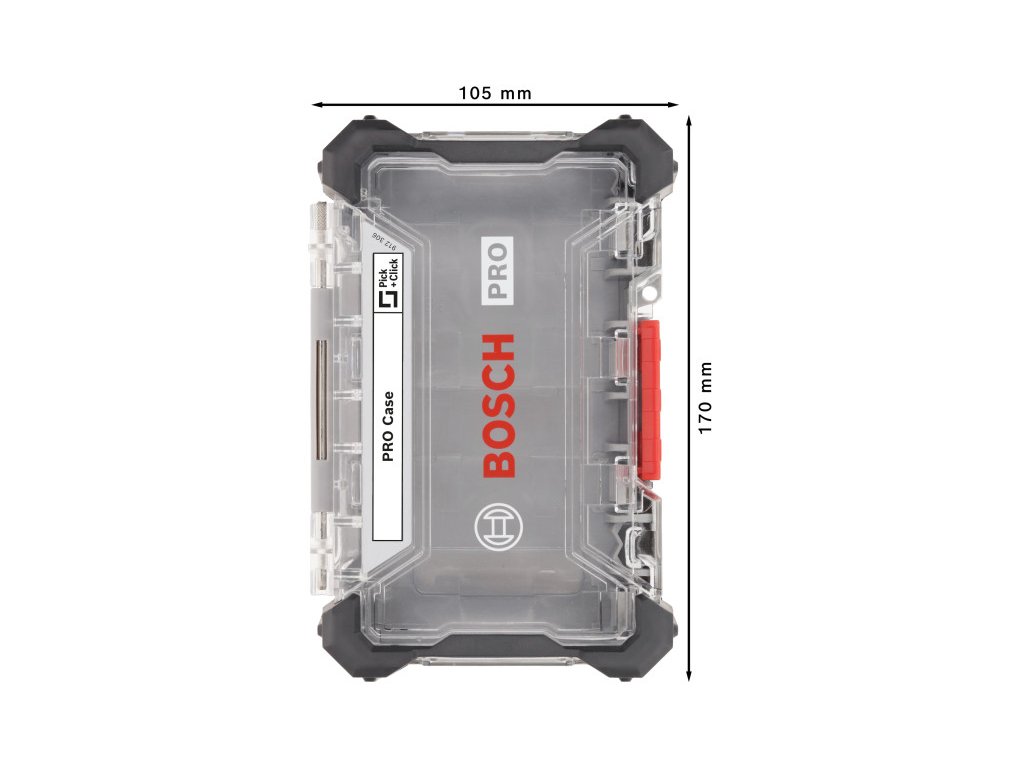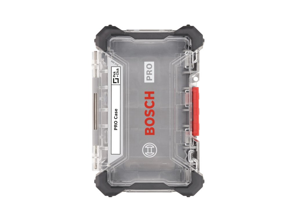 A PRO Case segít a csavarbitek, fúrószárak és csavarok rendszerezésében és biztonságos tárolásában. A doboz könnyen lezárható és nyitható. Kompatibilis a Bosch Pick and Click dobozokkal és műanyag bittartókkal, ami azt jelenti, hogy könnyedén bepattinthatod őket, elkészítve saját szerszámdobozodat.