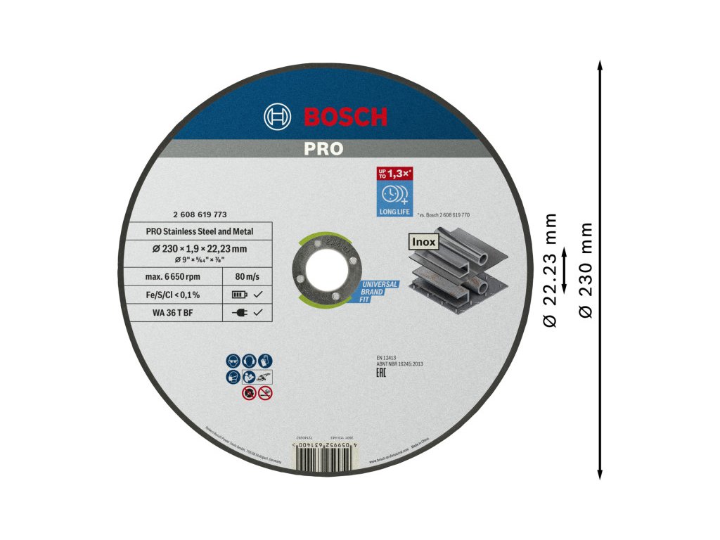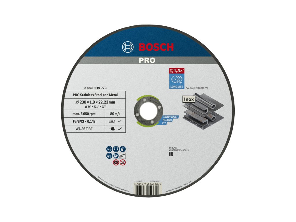 A PRO Stainless Steel and Metal kötőanyaggal készült vágótárcsa prémium minőségű alumínium-oxid szemcséket használ a szilárdság és tartósság érdekében. A csiszolószemcséket funkcionális töltőanyagokkal kombináltuk, és a szilárdság fokozása érdekében fenolgyantába ágyaztuk be. A vágótárcsát kiváló minőségű üvegszálas hálóval erősítettük meg a biztonságosabb és stabilabb teljesítmény érdekében. Plusz, fémmentessé tettük. Ez azt jelenti, hogy nem kell aggódnod a munkadarab rozsdásodása miatt, ha csak rozsdamentes acélt vágsz.