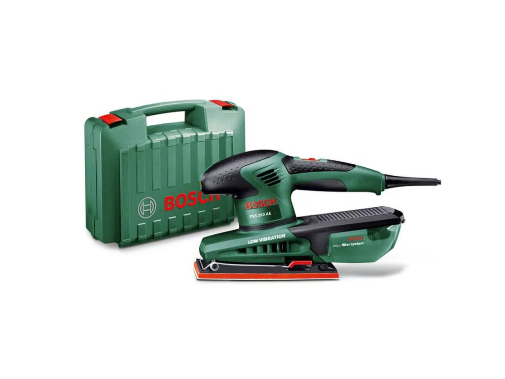 BOSCH PSS 250 AE Vibračná brúska + 28 brúsnych listov v kufri