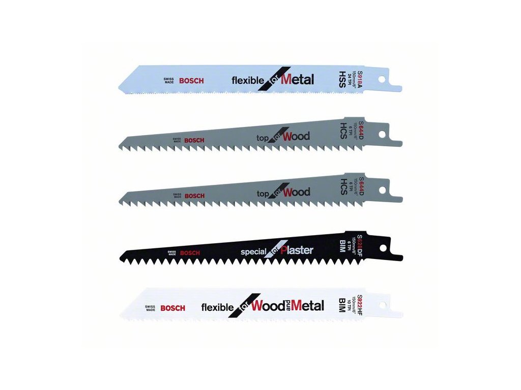 BOSCH Sada pílových listov pre chvostovú pílu 5 ks 150 mm (drevo-kov-sadrokartón)
