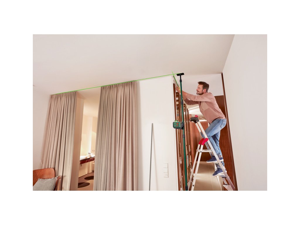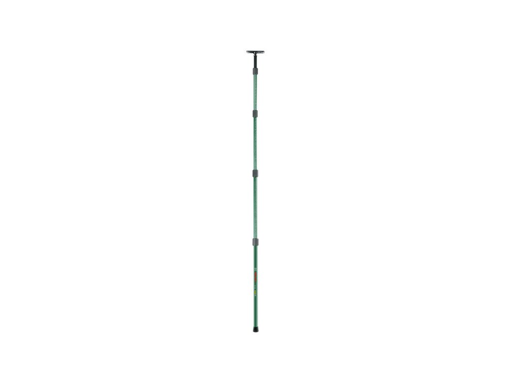 A TP 320 teleszkópos rúddal egyszerűen és gyorsan pozicionálhatod a szintezőeszközöket bármilyen kívánt magasságban. A 0,1 m és 3,20 m közötti munkavégzési tartomány lehetővé teszi eszközök kényelmes elhelyezését még rendkívüli magasságokban, például mennyezetek vagy padlók közelében is. Négy összecsavarozható teleszkópos darab a gyors és egyszerű összeállításért, az eszköz rögzítésére szolgáló kengyelekkel a még sokoldalúbb felhasználásért. A rúd rugós mennyezeti lapja szilárd, de rugalmas tartást biztosít minden szögben. Kompakt összecsukható formátuma és egy praktikus hordtáska gondoskodik a helytakarékos tárolásról és szállításról. Minden ¼"-es menettel rendelkező szintezőeszközhöz.