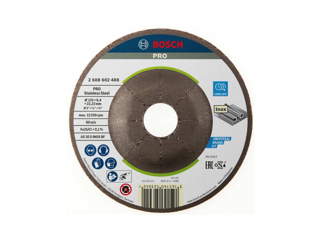 BOSCH Tisztítókorong rozsdamentes acélhoz 125 x 6,0 x 22,2 mm hajlított AS 30 S INOX BF