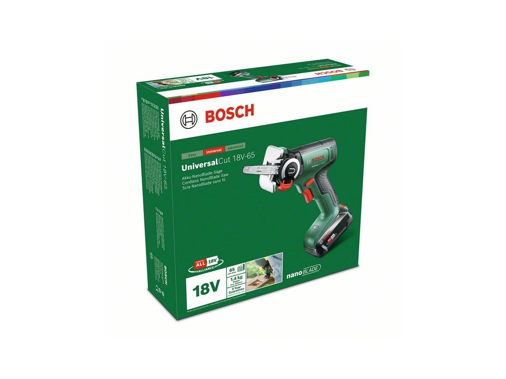 A szabadkezes fűrészelés még soha nem volt ilyen egyszerű: a kényelmesen használható, akkus UniversalCut 18V-65 szerszámnak köszönhetően. Ezzel a könnyű és nagy teljesítményű fűrésszel nem szükséges befogni a munkadarabot, megrajzolni a vágás vonalát, vagy egyéb előkészületet tenni – különféle fűrészelési feladatokhoz használható az otthoni és kerti barkácsoláskor. Optimalizált ergonómia a kétkezes fűrészeléshez – ideális a nehezebb feladatoknál. A NanoBlade technológiával a fűrészelés kényelmes és rezgésmentes, a fűrészlapok pedig nem igényelnek karbantartást. Ez a szerszám tökéletes a fában, faalapú anyagokban és műanyagban történő egyenes és merülőfűrészeléshez. Használata egyszerű: a UniversalCut 18V-65 egyszerűen használható fordulatszám-kapcsolóval és SDS-rendszerrel rendelkezik a könnyű késcseréhez. Ez a szerszám a 18V POWER FOR ALL ALLIANCE rendszer része. Egyetlen akkumulátor minden 18V POWER FOR ALL szerszámhoz.