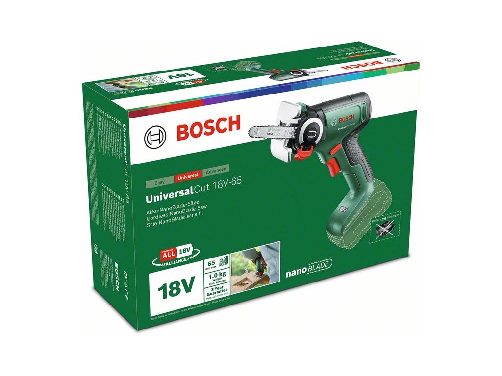 A szabadkezes fűrészelés még soha nem volt ilyen egyszerű: a kényelmesen használható, akkus UniversalCut 18V-65 szerszámnak köszönhetően. Ezzel a könnyű és nagy teljesítményű fűrésszel nem szükséges befogni a munkadarabot, megrajzolni a vágás vonalát, vagy egyéb előkészületet tenni – különféle fűrészelési feladatokhoz használható az otthoni és kerti barkácsoláskor. Optimalizált ergonómia a kétkezes fűrészeléshez – ideális a nehezebb feladatoknál. A NanoBlade technológiával a fűrészelés kényelmes és rezgésmentes, a fűrészlapok pedig nem igényelnek karbantartást. Ez a szerszám tökéletes a fában, faalapú anyagokban és műanyagban történő egyenes és merülőfűrészeléshez. Használata egyszerű: a UniversalCut 18V-65 egyszerűen használható fordulatszám-kapcsolóval és SDS-rendszerrel rendelkezik a könnyű késcseréhez. Ez a szerszám a 18V POWER FOR ALL ALLIANCE rendszer része. Egyetlen akkumulátor minden 18V POWER FOR ALL szerszámhoz.