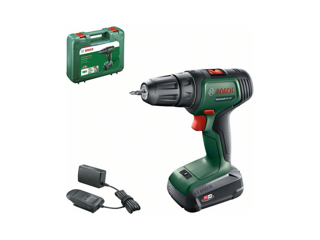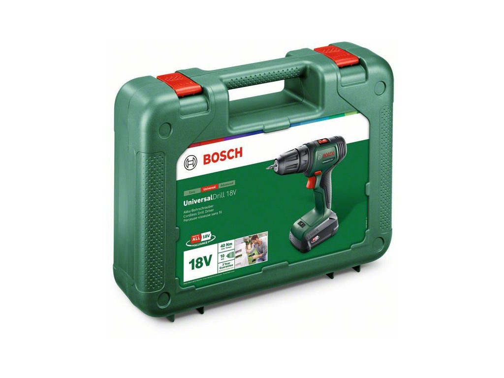 BOSCH UniversalDrill 18 Akumulátorový vŕtací skrutkovač (1x1,5Ah) v kufri