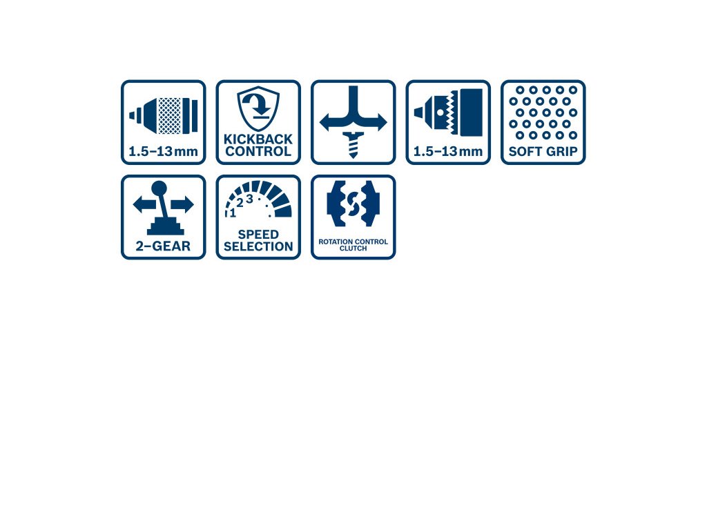 Szállítva: 210 mm-es mélységütköző 1 613 001 010, 7 részes fafúró bitkészlet (3/4/5/6/7/8/10 mm) 2 607 017 034, Gyorsbefogó fúrótokmány 13 mm 2 608 572 150,