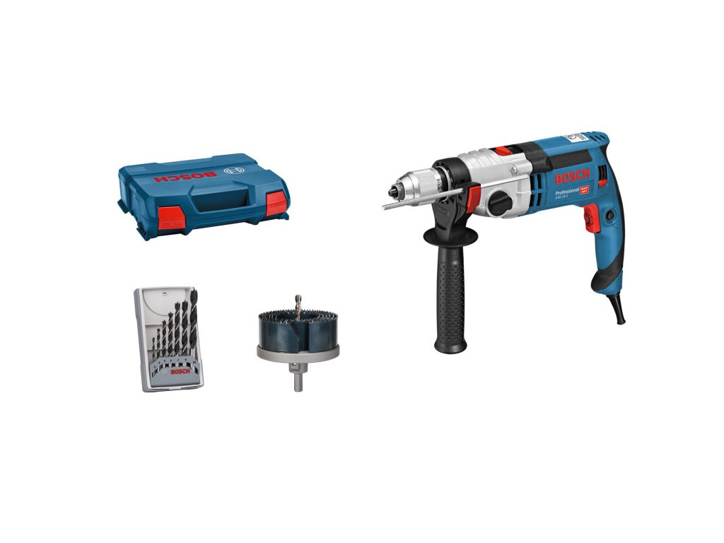 BOSCH Príklepová vŕtačka GSB 24-2 v kufri + sada vrtákov na drevo a otvorové píly