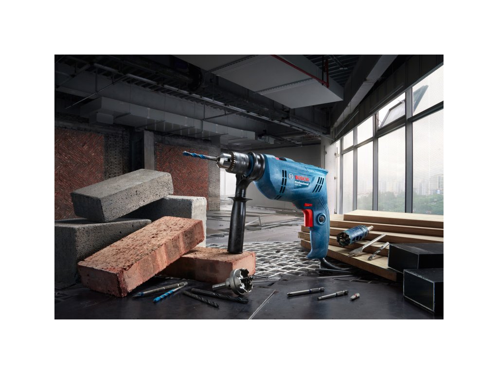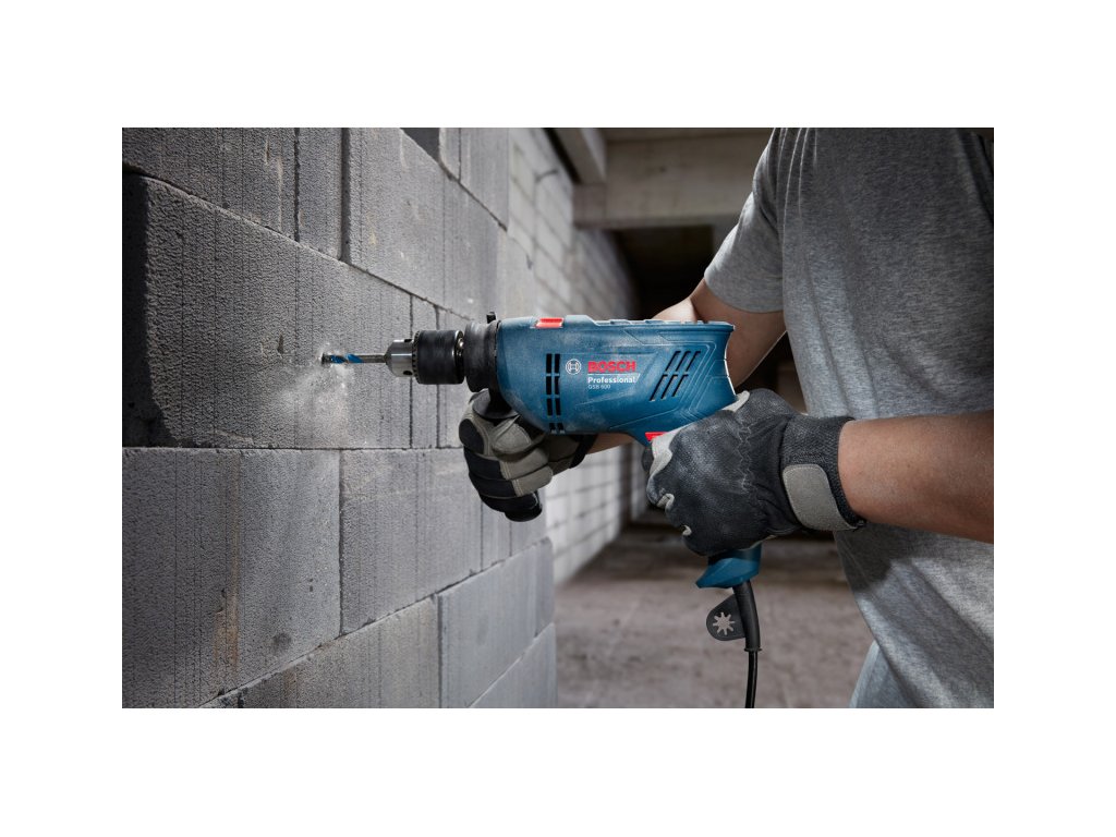 A GSB 600 Professional robusztus és továbbfejlesztett 600 W-os motorral rendelkezik, amellyel energia és idő takarítható meg a munka befejezéséhez. A szerszám kiváló teljesítményt nyújt és jobban viseli a nagy terheléseket. A 13 mm-es ütvefúró hosszú élettartamú a továbbfejlesztett szénkefének és minőségi kialakításának köszönhetően. A további bordák lehetővé teszik a kiegészítő fogantyú jobb rögzítését, így segítenek megelőzni a csukló sérülését.
