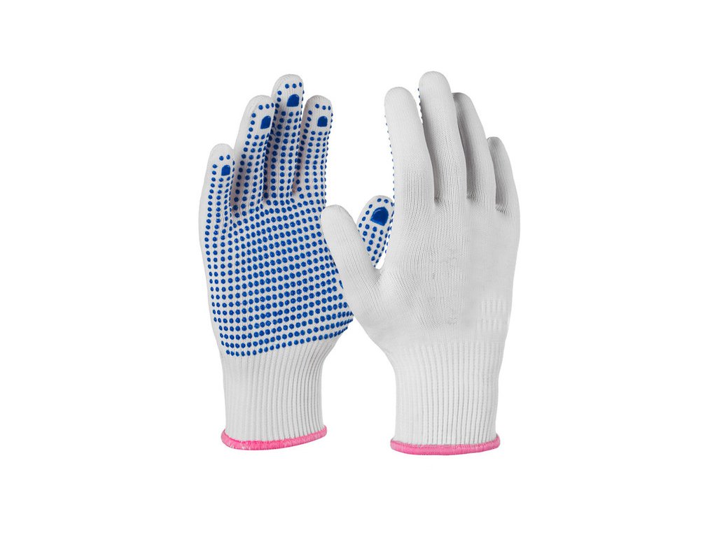 Bezšvové pletené rukavice s elastickým zápästím Vyrobené zo 100% polyamidu PVC bodky na dlani a prstoch Protišmykový povrch poskytuje výborný úchop Ľahké, pohodlné a pružné Technické údaje: Typ: pletený Materiál: polyamid Povlak: PVC bodky Zápästie: elastické Hmotnosť: svetlá Farba : biela, modrá Veľkosť : 10 Použitie Pri elektronickej montáži Na mierne mastné povrchy Pri montáži predmetov a pri presnej práci Pre práce vyžadujúce zručnosť a priľnavosť