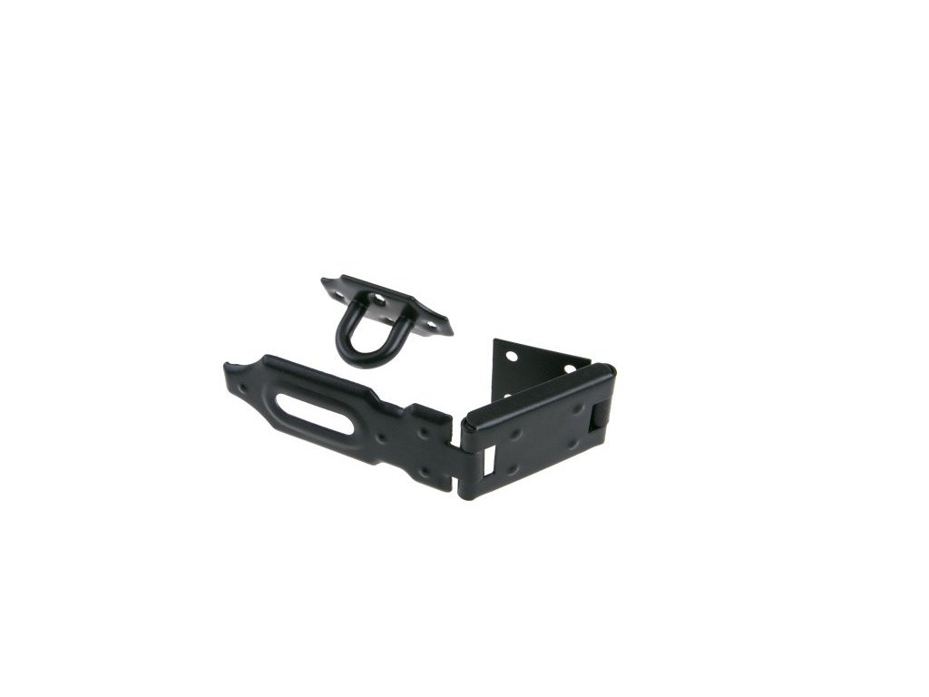 The lock is designed to reliably prevent the opening of doors and other structures. It is made of high-quality sheet steel. Due to the fact that this eyelet is double-jointed, it enables the locking of objects with a more complex shape, or locking behind a corner.