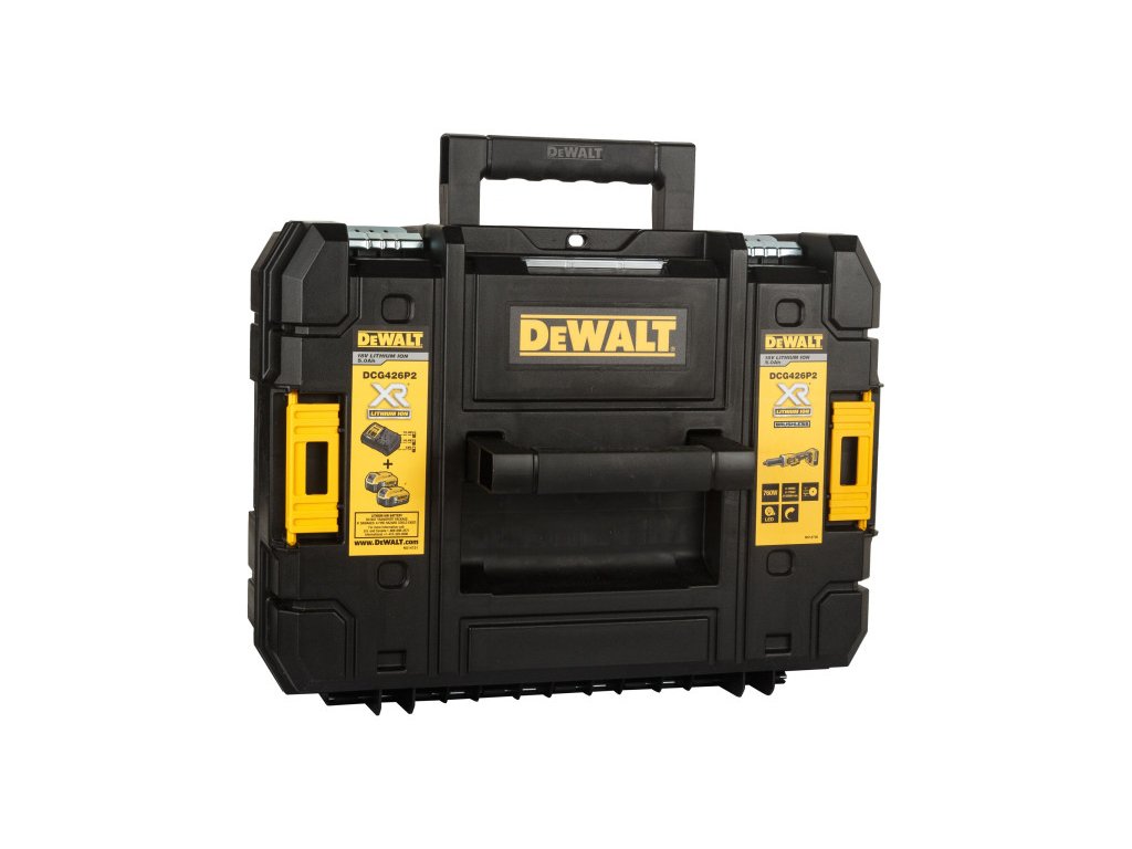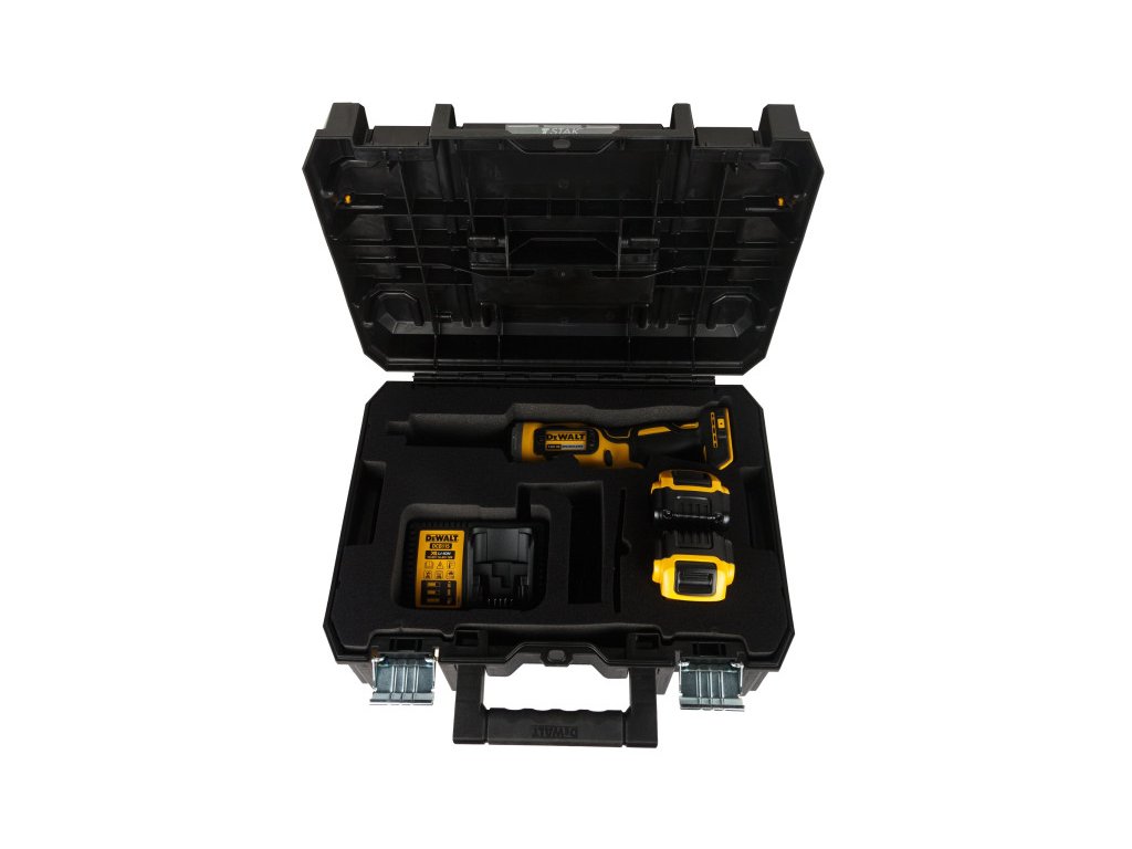 DEWALT Akumulátorová priamočiara brúska 18 V bez uhlíkovej kefky (2 x 5,0 Ah batérie + nabíjačka) DCG426P2