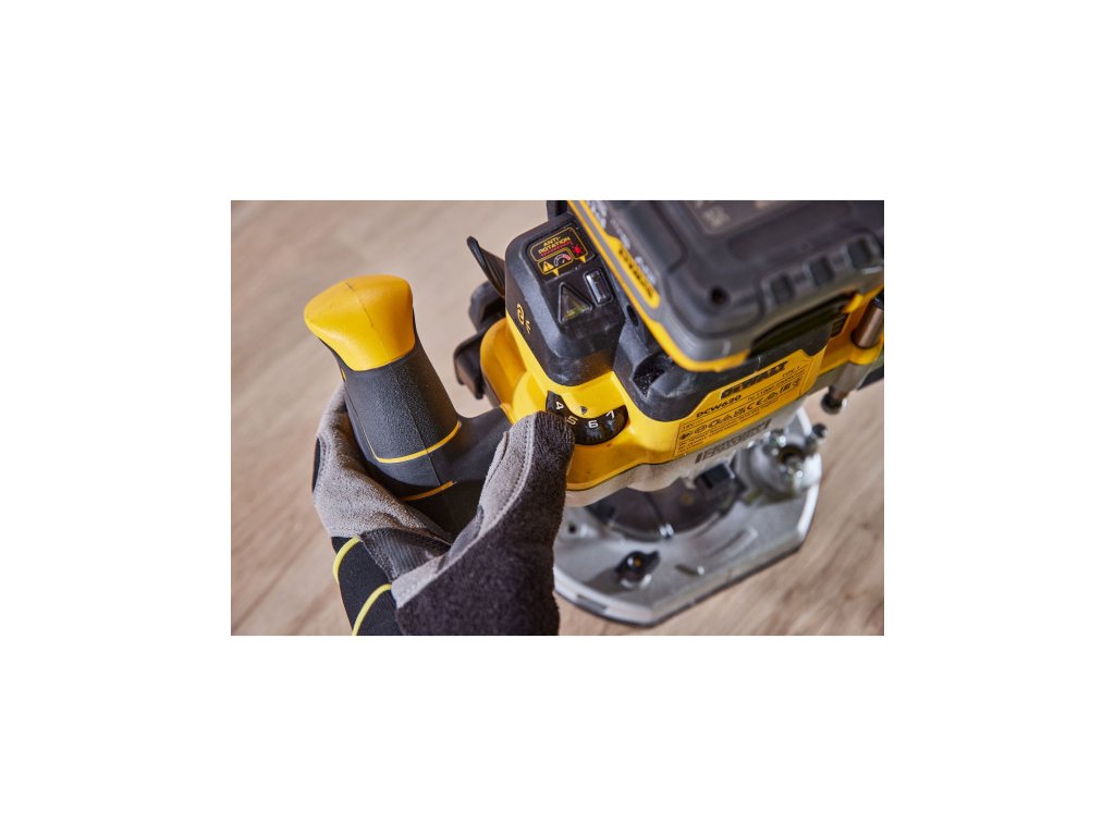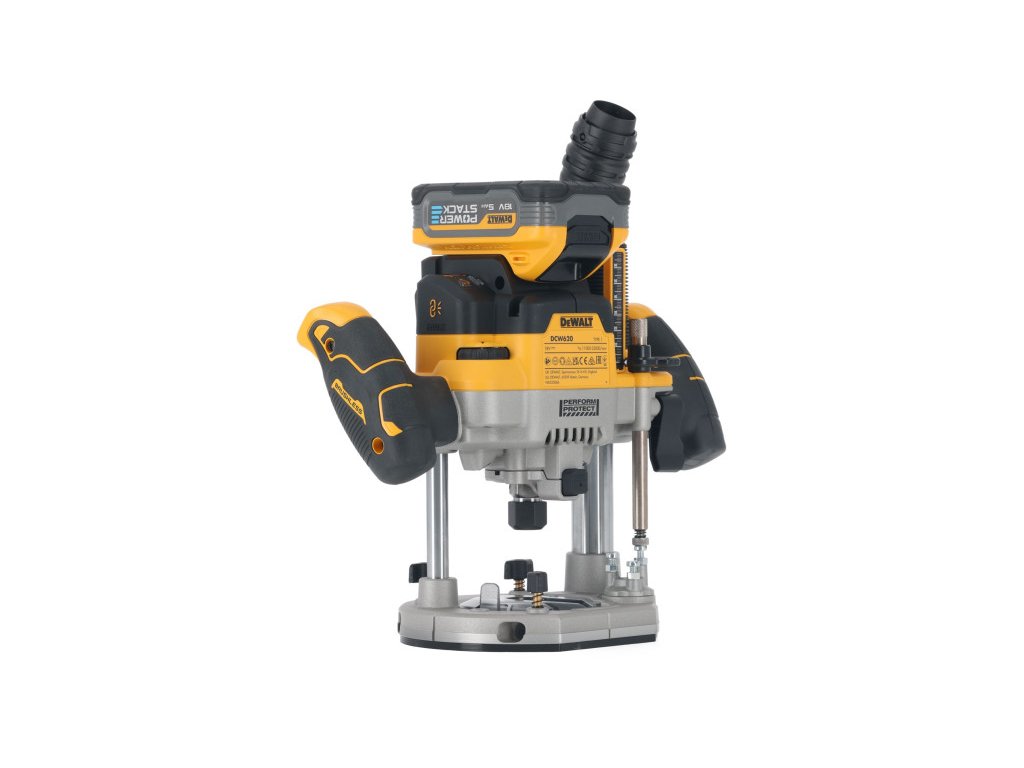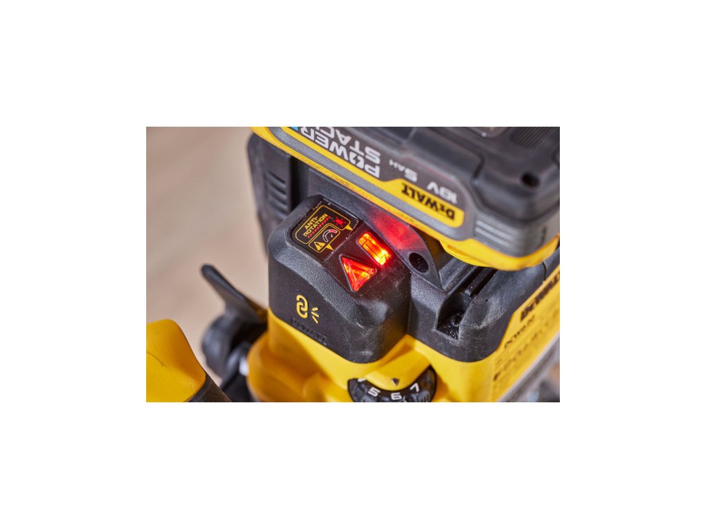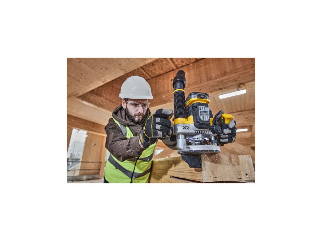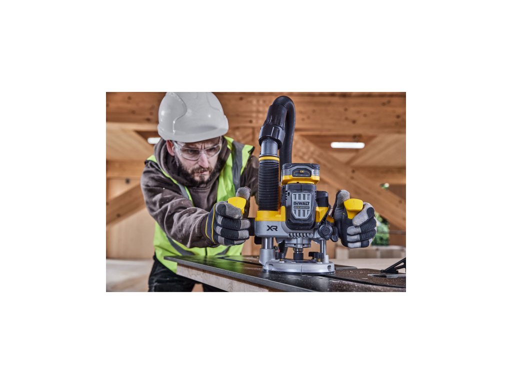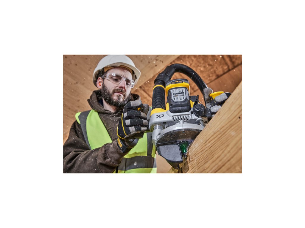 Első vezeték nélküli 1/2"-os felsőmarónk további alkalmazási lehetőségeket kínál a professzionális asztalosok számára a 18V XR rendszer segítségével. A hatékony DEWALT szénkefe nélküli motor és a Pack ID technológia révén a szerszám 18V XR POWERSTACK vagy XR FLEXVOLT akkumulátorral nagy teljesítményt nyújt. A 70 mm-es merülési mélység több feladat elvégzését teszi lehetővé, az ergonomikus indítókapcsoló, a merülésreteszelő és a változtatható sebesség pedig megbízható pontosságot és sokoldalúságot biztosít a helyszínen. Az integrált porelszívás, az AirLock-kompatibilitás és a beépített vezeték nélküli szerszámvezérlés lenyűgöző porkezelést kínál.