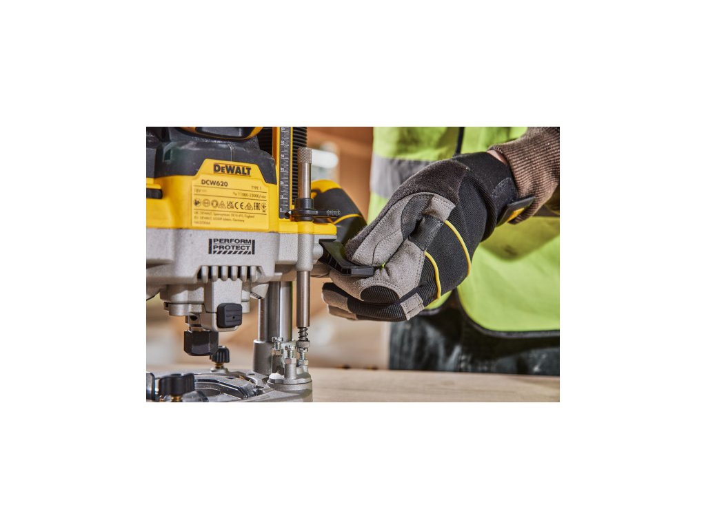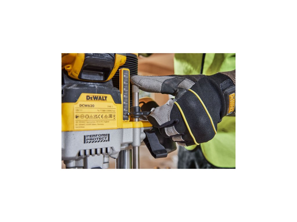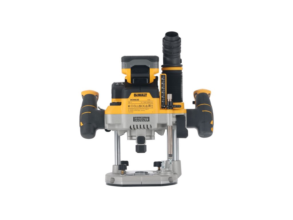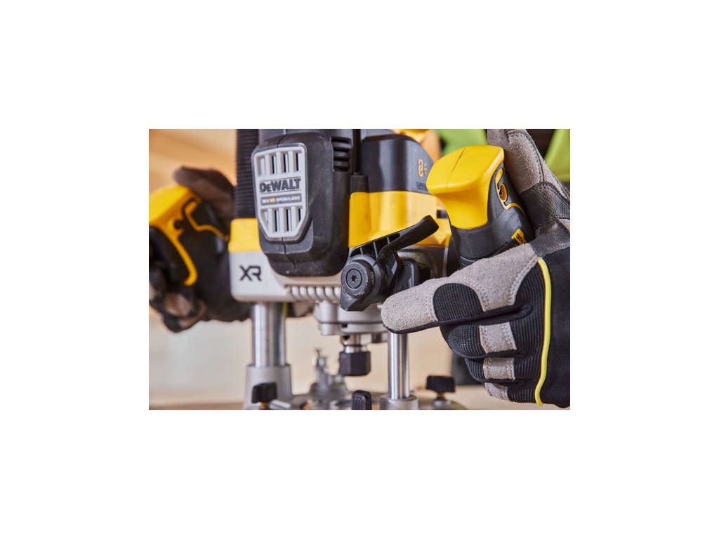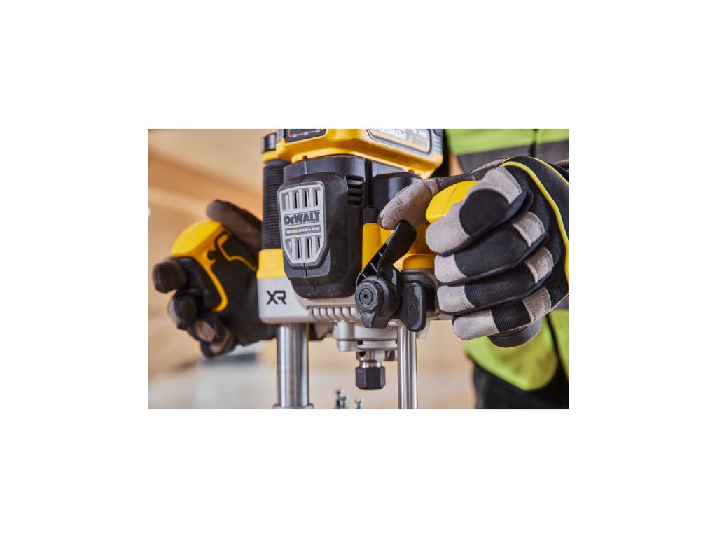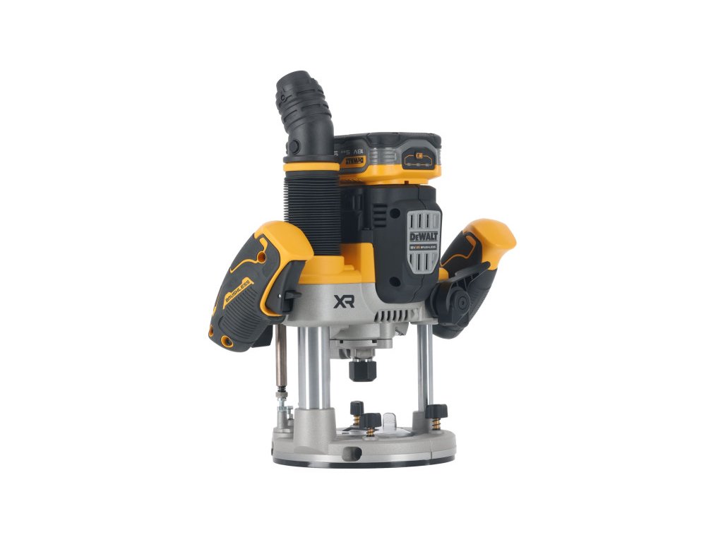 Első vezeték nélküli 1/2"-os felsőmarónk további alkalmazási lehetőségeket kínál a professzionális asztalosok számára a 18V XR rendszer segítségével. A hatékony DEWALT szénkefe nélküli motor és a Pack ID technológia révén a szerszám 18V XR POWERSTACK vagy XR FLEXVOLT akkumulátorral nagy teljesítményt nyújt. A 70 mm-es merülési mélység több feladat elvégzését teszi lehetővé, az ergonomikus indítókapcsoló, a merülésreteszelő és a változtatható sebesség pedig megbízható pontosságot és sokoldalúságot biztosít a helyszínen. Az integrált porelszívás, az AirLock-kompatibilitás és a beépített vezeték nélküli szerszámvezérlés lenyűgöző porkezelést kínál.