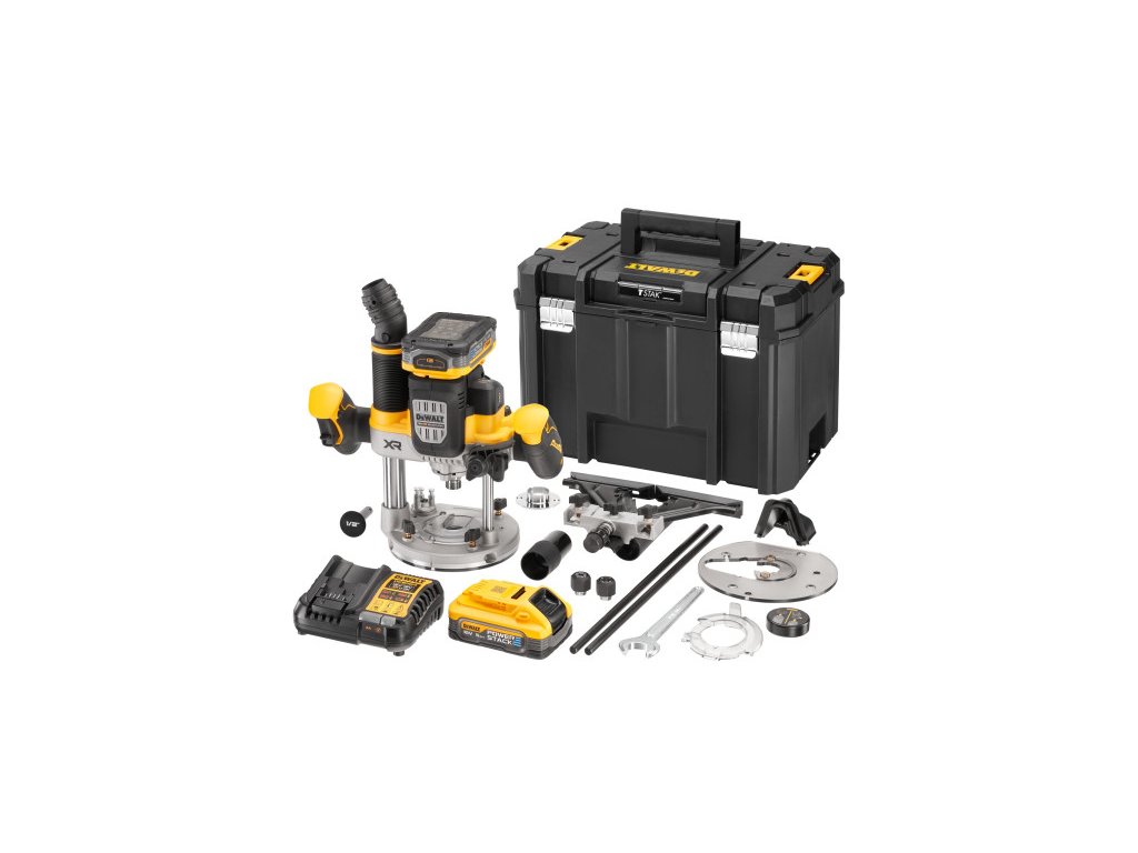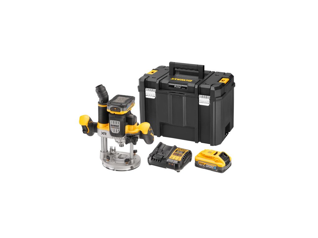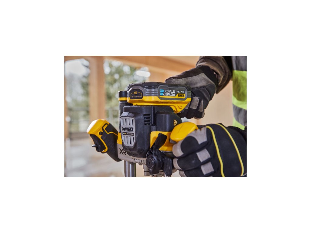 DEWALT Akkus felsőmaró 18 V 12 mm (2 x 5,0 Ah Power Stack akku + töltő + TSTAK)