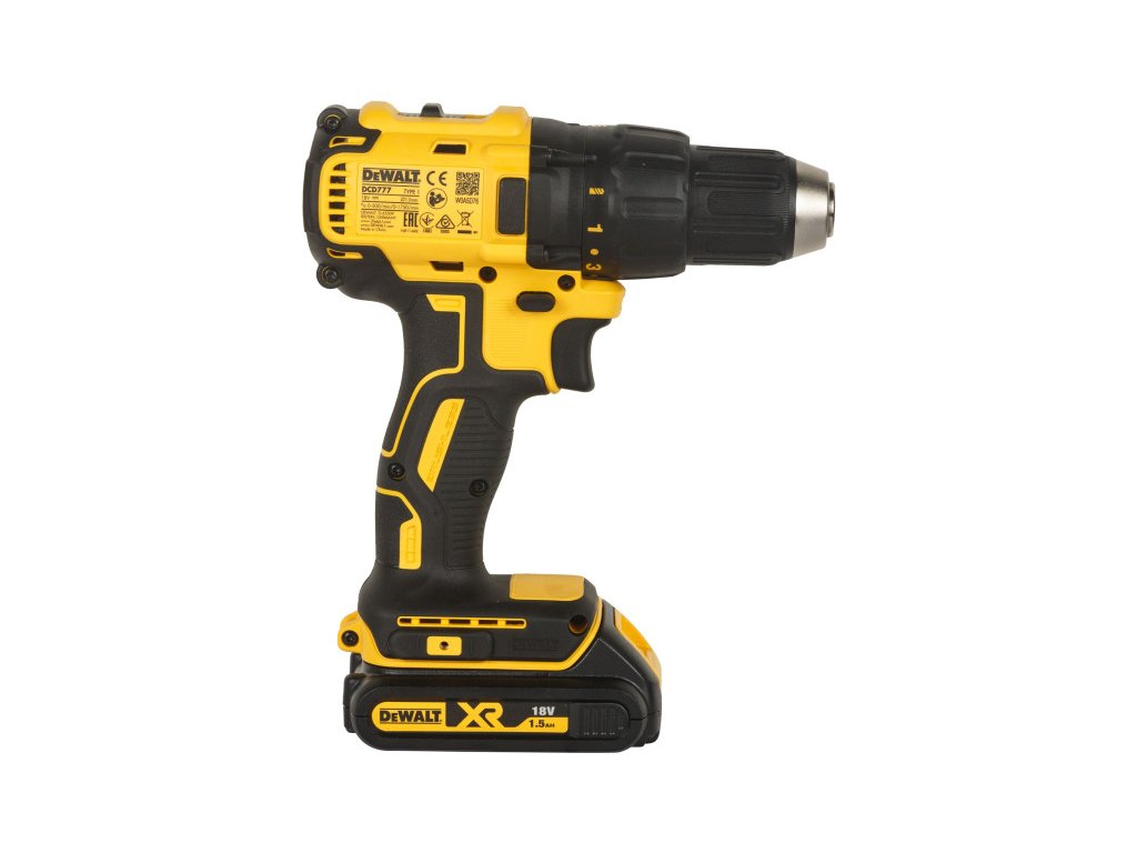 Kompaktná vŕtačka, ktorá dopĺňa sériu XR Dva stupne, plynulá regulácia otáčok a prepínač spätného chodu zaručujú maximálnu ovládateľnosť 15 polôh pre nastavenie krútiaceho momentu Jasné svetlo LED diódovej lampy zlepšuje viditeľnosť pracovného procesu a funkčnosť náradia Kapacita vŕtania Max v dreve/kove/murive: 30 / 13 / - mm Technické údaje Typ batérie Li-Ion Vrátane batérie 2 Kapacita batérie (Ah) 1,5 Max krútiaci moment (Nm) 4 / 42 Veľkosť skľučovadla (mm) 1,5–13 Voľnobežné otáčky (. f/p) 0 – 1500 / 1750 Typ nabíjačky Dodávané s nabíjačkou Napätie (V) 18 Hmotnosť (kg) 1,15
