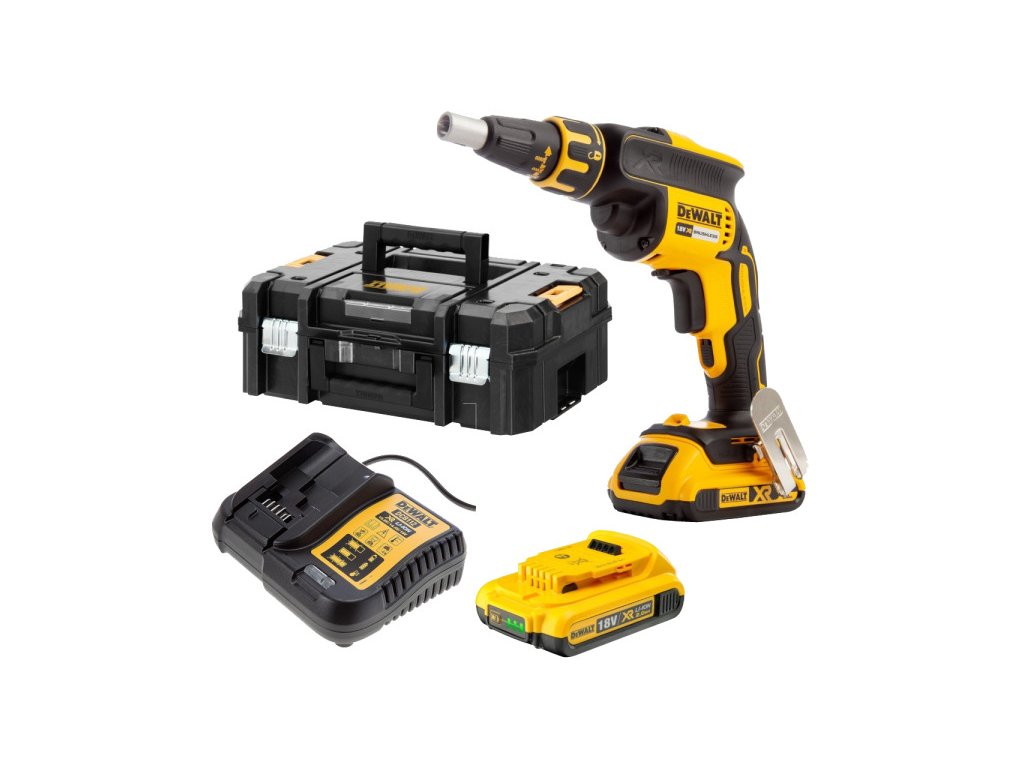 DEWALT Akumulátorový sadrokartónový skrutkovač 18 V bez uhlíkovej kefy (2 x 2,0 Ah batérie + nabíjačka) DCF620D2