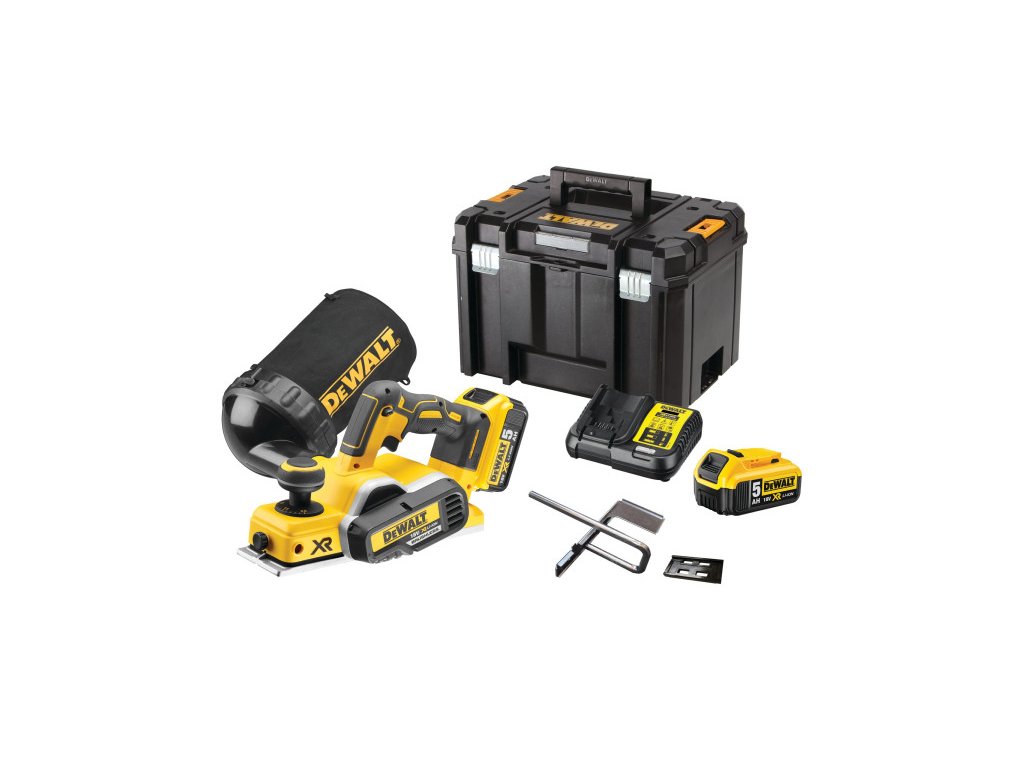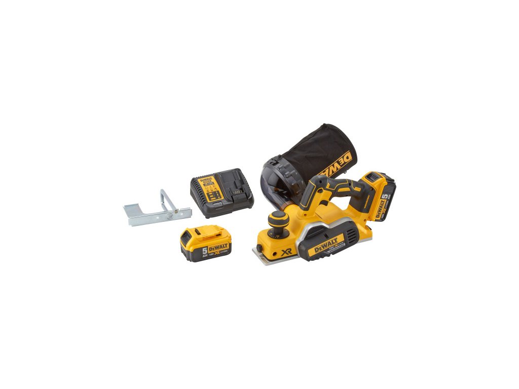 DEWALT Akumulátorový hoblík 18 V bez uhlíkovej kefky (2 x 5,0 Ah batérie + nabíjačka) DCP580P2