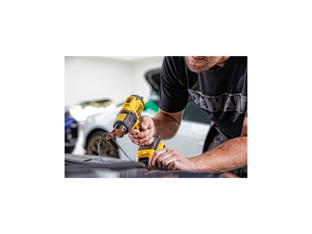 Bezpečnostný spínač so zámkom zaisťuje bezpečnú prevádzku a zabraňuje náhodnému zapnutiu napríklad počas prepravy Veľmi výkonná LED dióda pre dokonalé osvetlenie pracovnej plochy Dvojstupňový spínač teploty a rýchlosti vzduchu Prevádzková doba pri použití 5,0 Ah batérie v závislosti od použitého stupňa cca 18/22 minút Obsahuje kužeľovú trysku a škrabku na farbu Technické údaje Typ batérie Li-Ion Vrátane batérie 0 Kapacita batérie (Ah) Dodávaná bez batérie Rozsah teplôt (°C) 290 / 530 Prietok vzduchu (l/m) 109 / 190 Napätie (V) 18 Nabíjačka Dodávané bez nabíjačky Hmotnosť bez batérie ( kg) 1,2