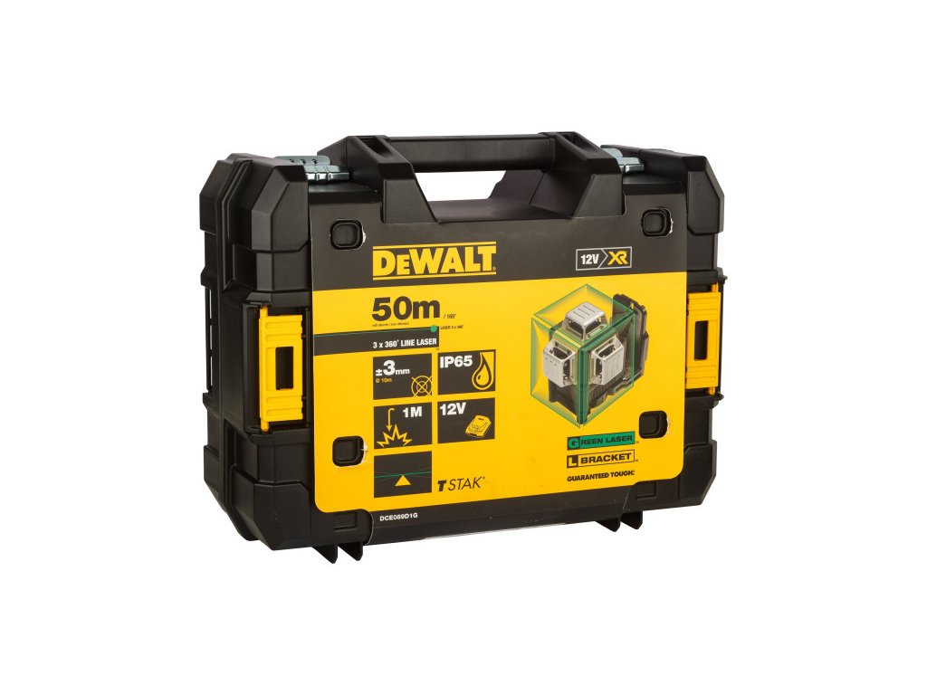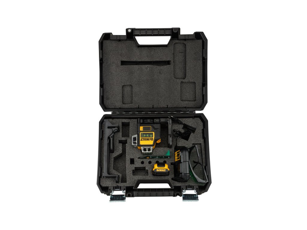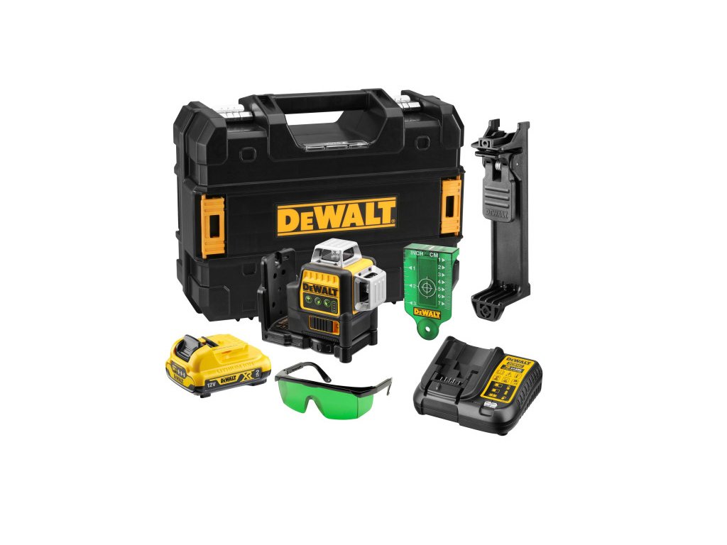 Je kompatibilný s 12V a 18V XR batériami, využíva oba rozsahy napätia batériových systémov DEWALT a funguje aj s 10,8V XR batériami Premieta jednoduchý ZELENÝ laserový kríž na zarovnanie objektov horizontálne a vertikálne Horizontálne manuálne jemné nastavenie pre dokonale presné merania Testované pádom z jedného metra Trieda ochrany IP54 Technické údaje Typ batérie Li-Ion Vrátane batérie 1 Kapacita batérie (Ah) 2,0 Napätie (V) 10,8 / 12 Počet lúčov 3 Trieda lasera Trieda II Presnosť (mm/m) ± 0,3 Rozsah samonivelácie (° ) ±4° Laser viditeľnosť do 35 m (do 50 m s detektorom) Smer lúča 2 × vertikálny / 1 × horizontálny Typ nabíjačky Dodávané s nabíjačkou Farba laserového lúča zelená Možno pripevniť na stojan 1/4“ a 5/8”