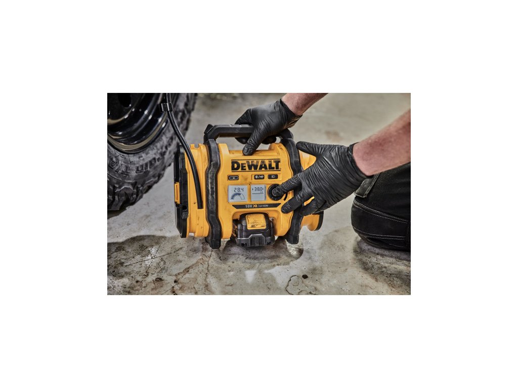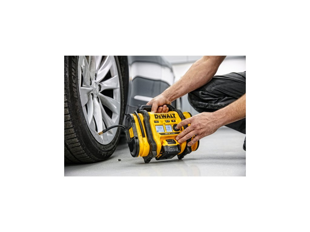 - A nagynyomású kimenet 400 másodperc alatt felfújja a 235/70R17 gumiabroncsot. Egy 4,0 Ah 18 V-os akkumulátorral 6 ilyen gumi- abroncsot fúj fel.