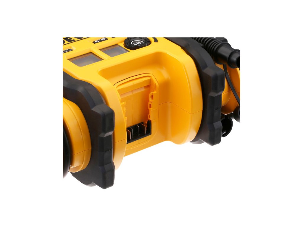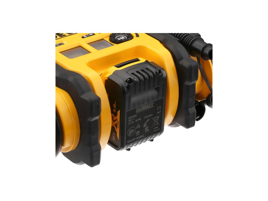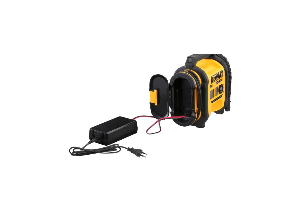 - 2 két kiváló minőségű LCD kijelző a paraméterek egyszerű beállításához, LED dióda asztali világításhoz, tápellátás három különböző forrásból 18 V DeWALT akkumulátor, 12 V autó akkumulátor vagy 230 V (230 V hálózati adapter nem tartozék) átkapcsolása nélkül.