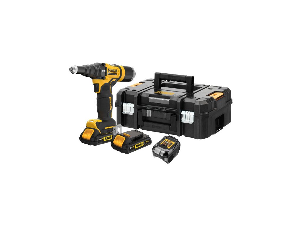 DEWALT Akumulátorová bezkomutátorová nitovačka 18 V (2 x 2,0 Ah batéria + nabíjačka, TSTAK)