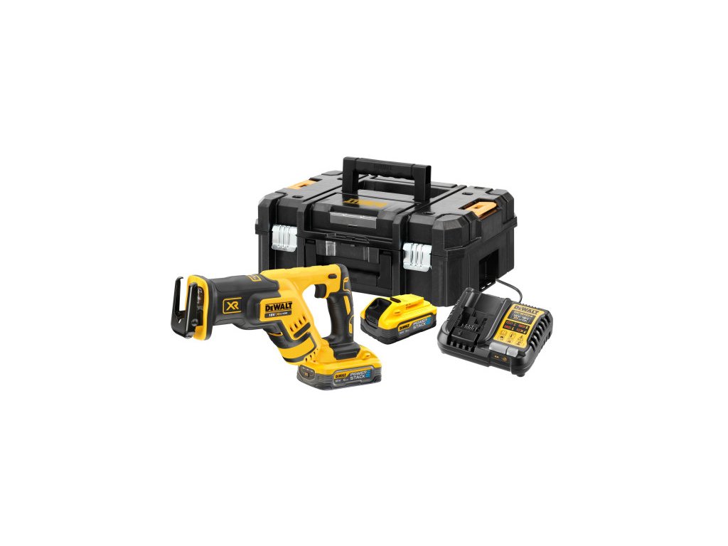 DEWALT Akkus szablyafűrész 18 V szk. nélküli (2 x 5,0 Ah Power Stack akku + töltő + TSTAK)