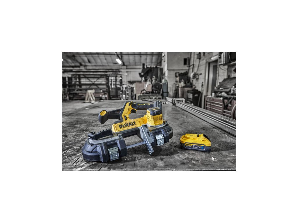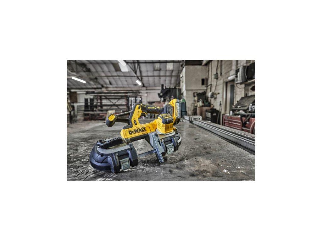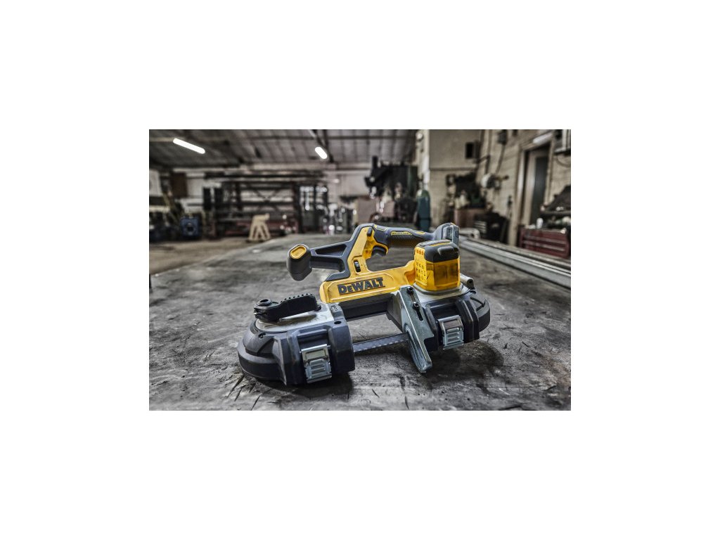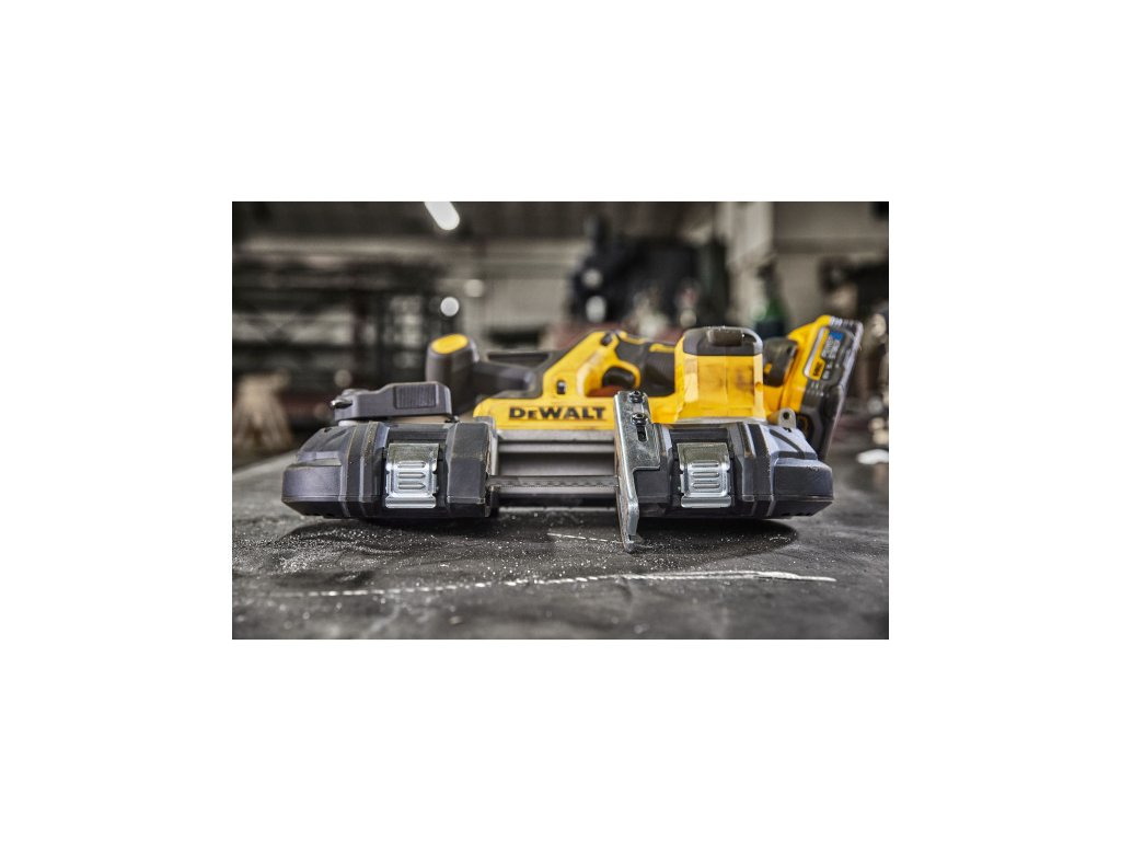 DEWALT Akumulátorová pásová píla 18 V bez uhlíkovej kefky, regulačné koliesko (bez akumulátora + nabíjačky)
