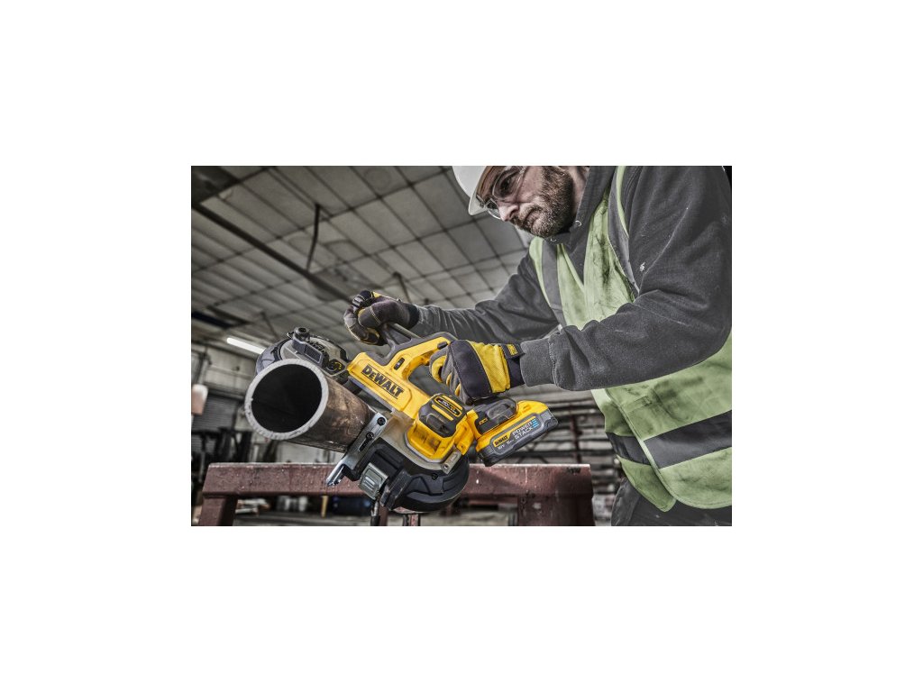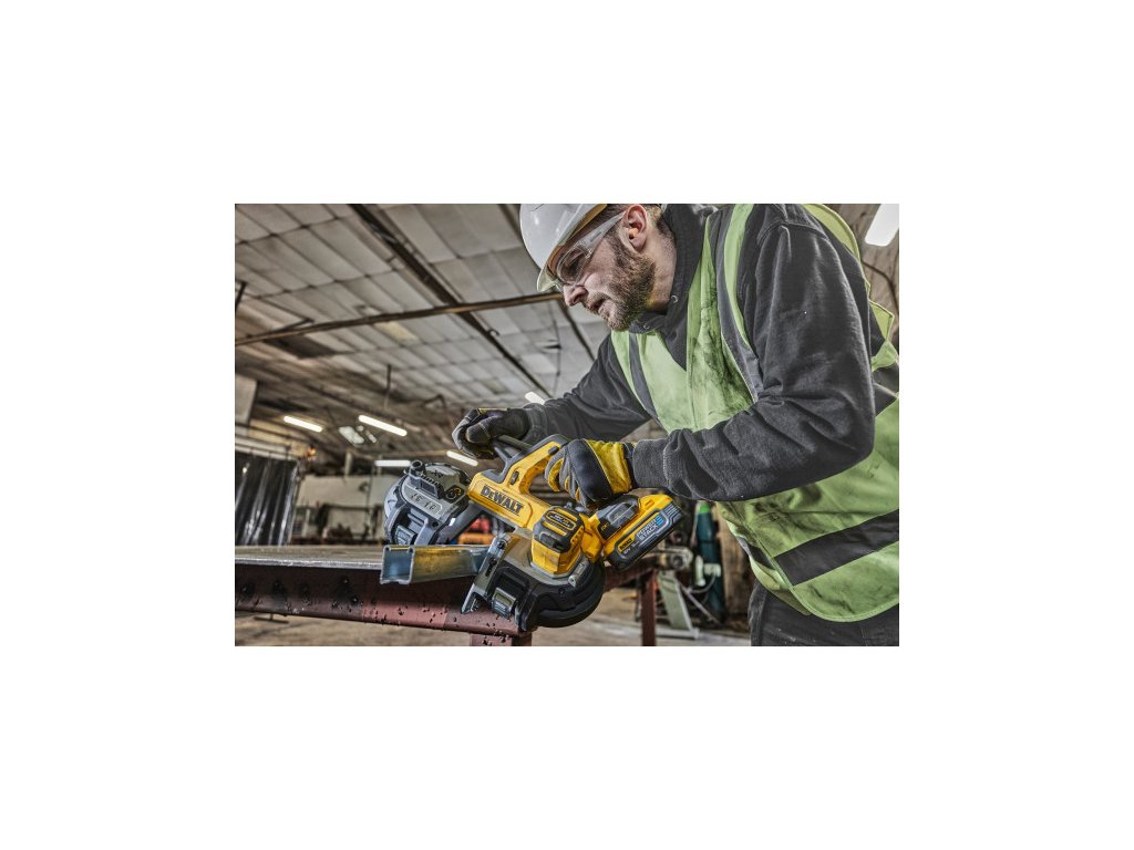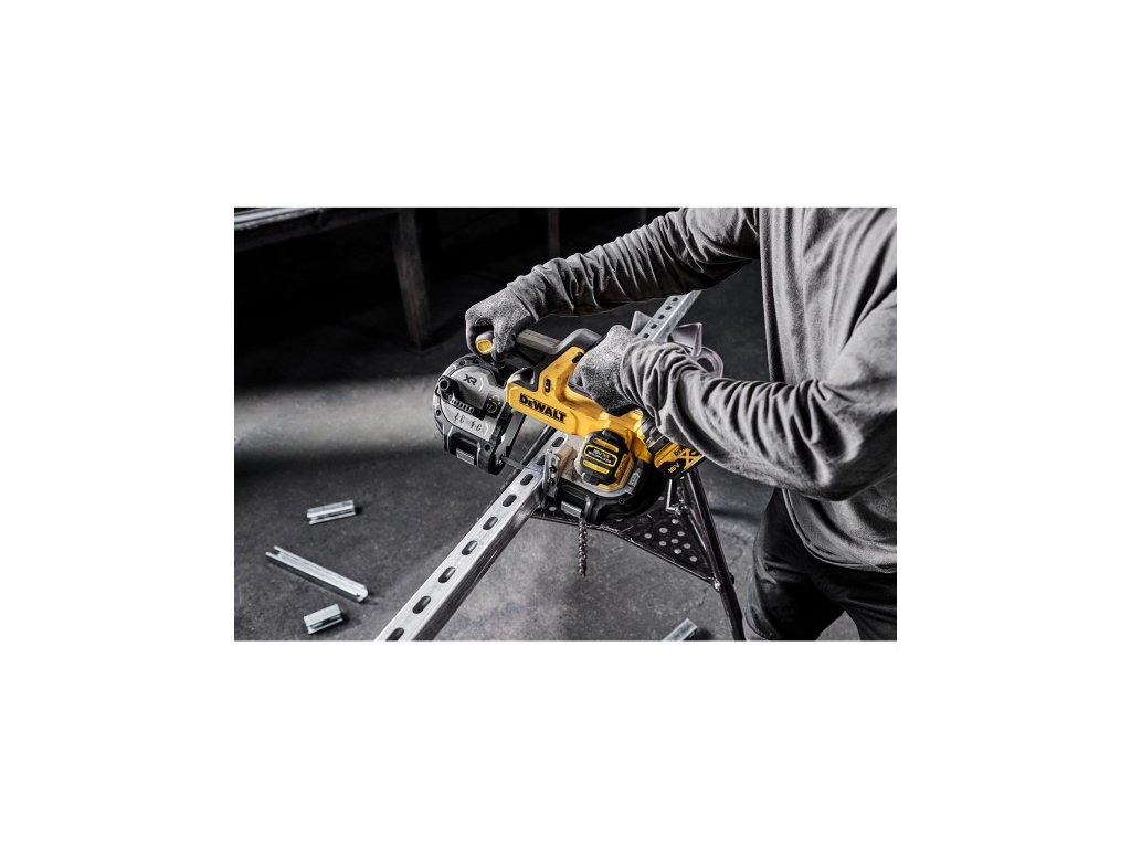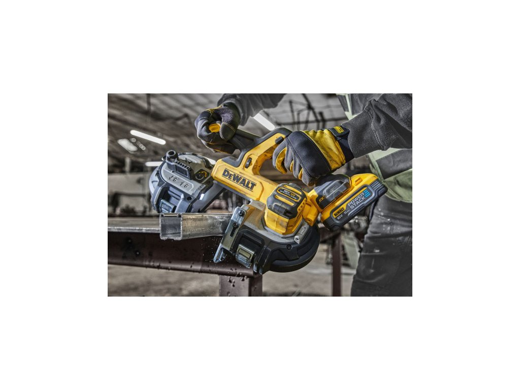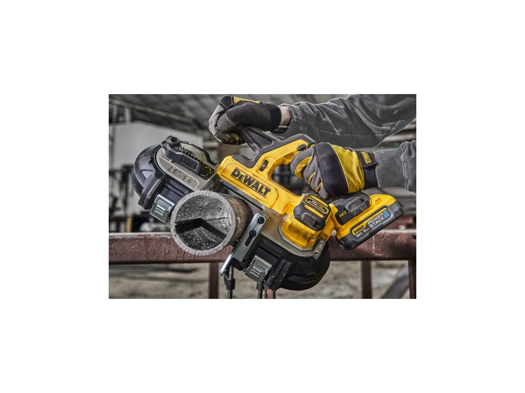 DEWALT Akumulátorová pásová píla 18 V bez uhlíkovej kefky, regulačné koliesko (bez akumulátora + nabíjačky)