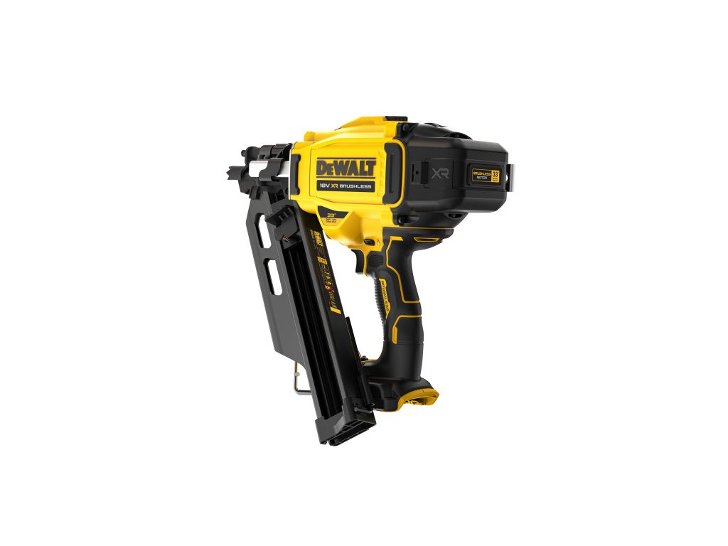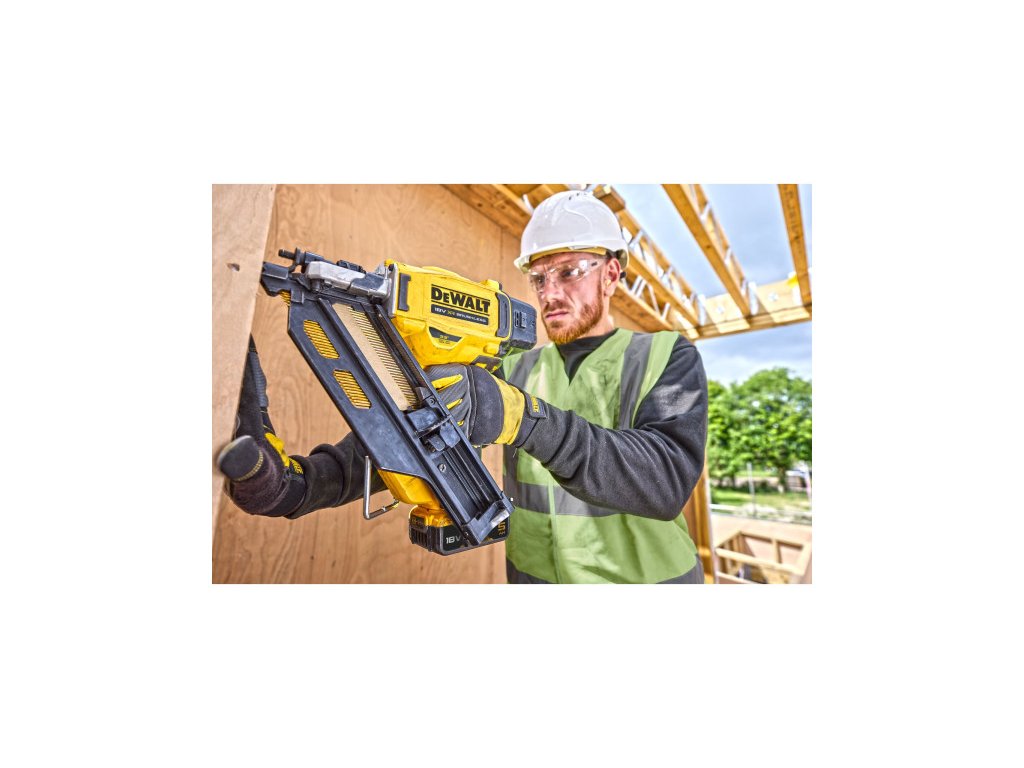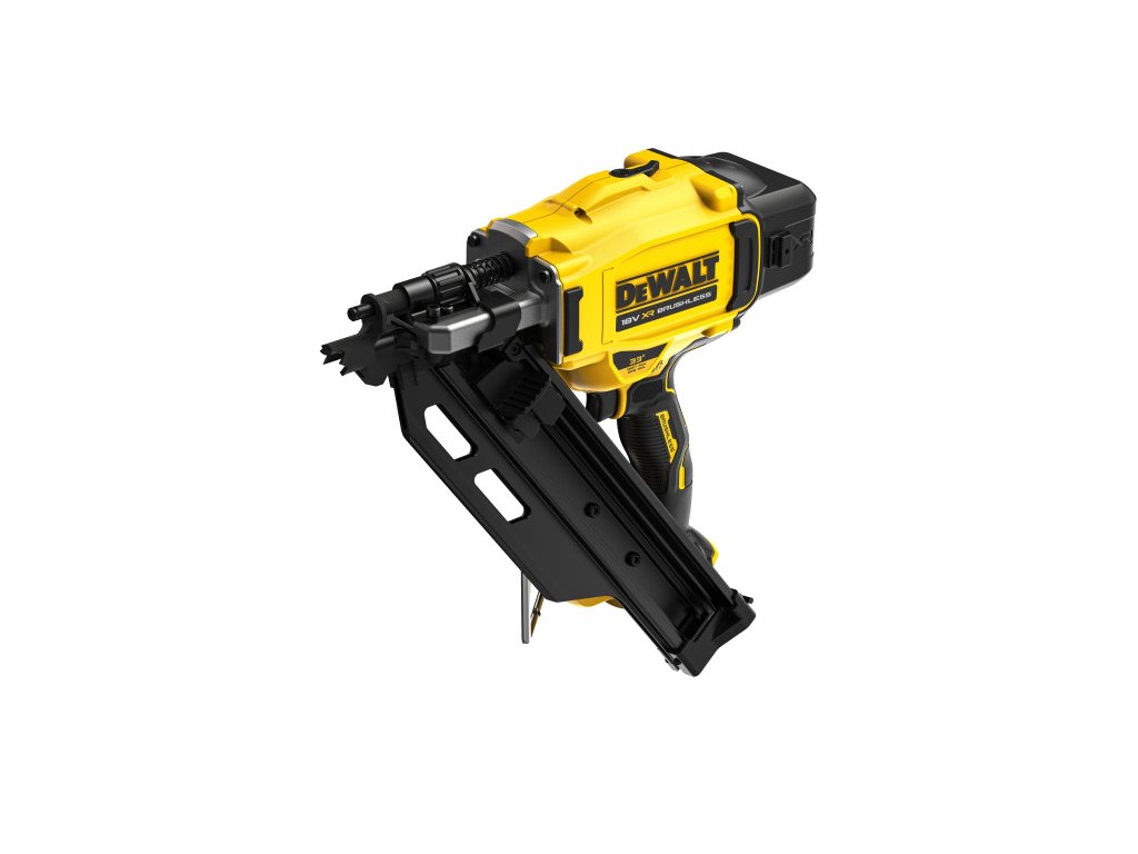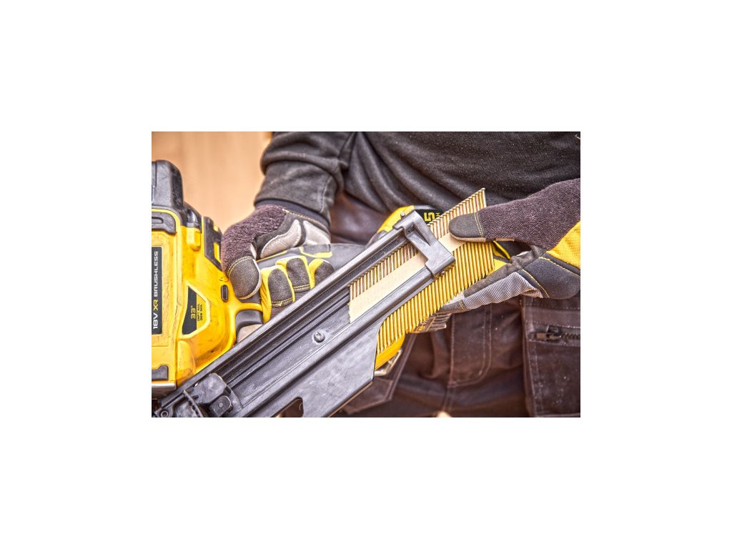 - Fokozott tartósságú, hatásfokú és teljesítményű 18 V-os szénkefe nélküli motor, amely képes 90 mm-es gyűrűs szárú szöget teljesen belőni a közepes sűrűségű faanyagba