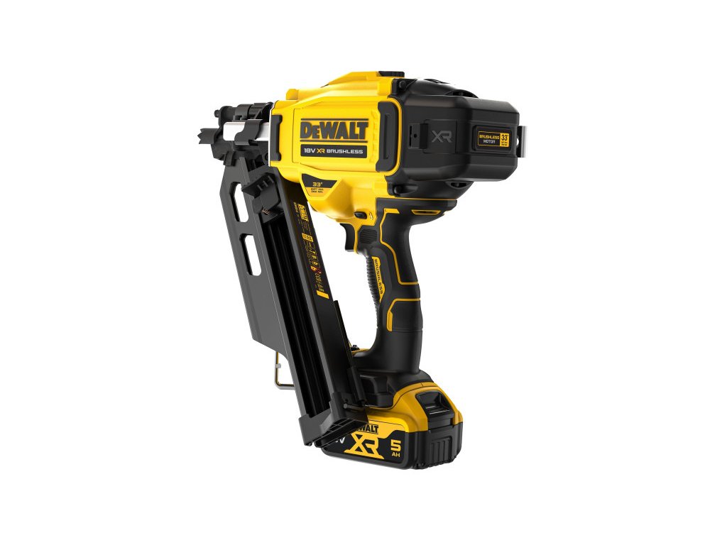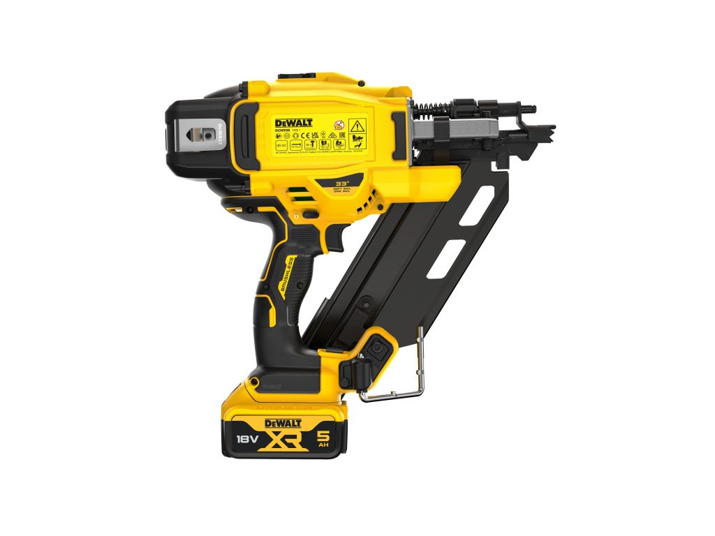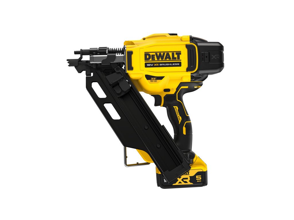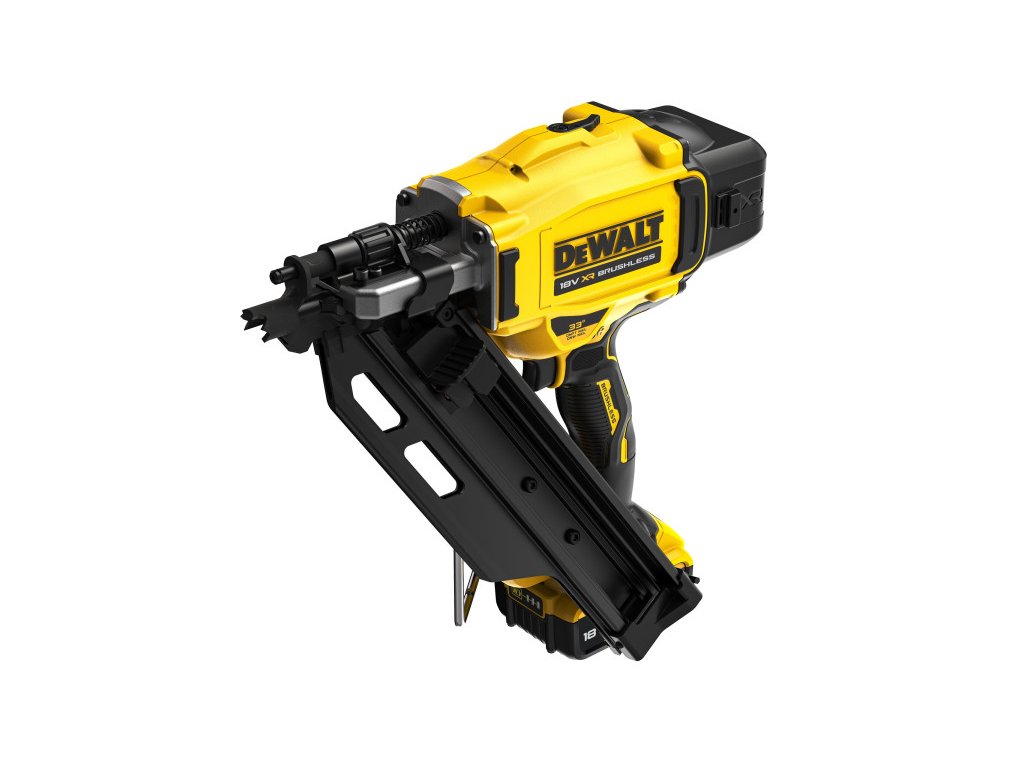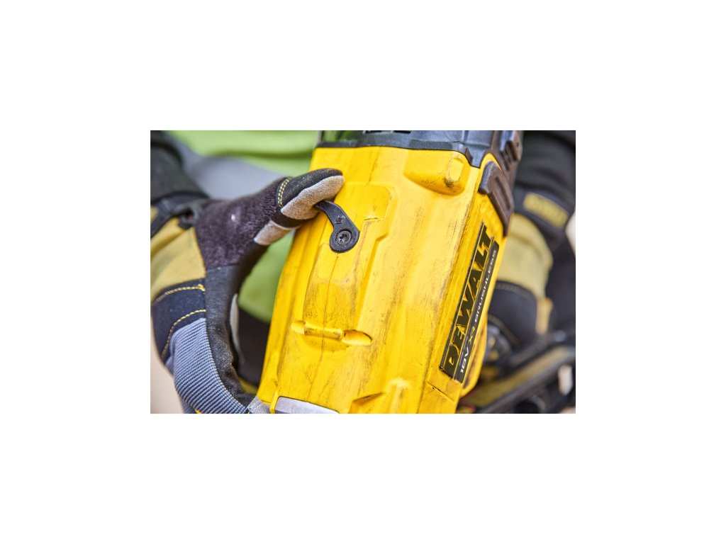 - Fokozott tartósságú, hatásfokú és teljesítményű 18 V-os szénkefe nélküli motor, amely képes 90 mm-es gyűrűs szárú szöget teljesen belőni a közepes sűrűségű faanyagba