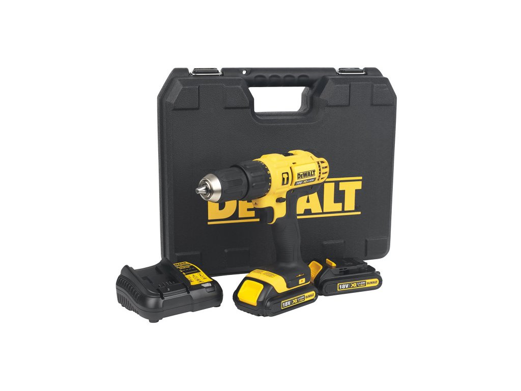 Erőteljes 18,0 V-os ütvefúró-csavarozó fúrási és csavarozási munkákhoz 1,3 Ah-s XR Li-Ion technológiával.
