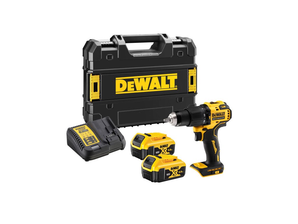 DEWALT akumulátorová príklepová vŕtačka 18V bez uhlíková (2 x 5 Ah+nabíjačka + TSTAK) DCD709P2T