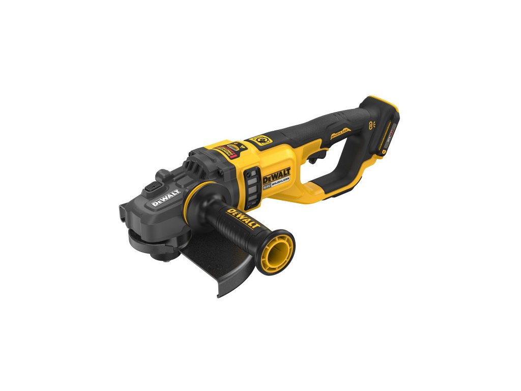A DEWALT első 230 mm-es akkumulátoros sarokcsiszolója nagyobb teljesítményt biztosít a több, mint 3000 MWO-val szénkefe nélküli motorral. A Perform and Protect funkciók közé tartozik a visszarúgási fék, amely teljesen leállítja a tárcsát, ha visszarúgást észlel, és az E-CLUTCH rendszer, amely azonnal leállítja a motort a felhasználó védelme érdekében, ha csípést vagy elakadást érzékel.