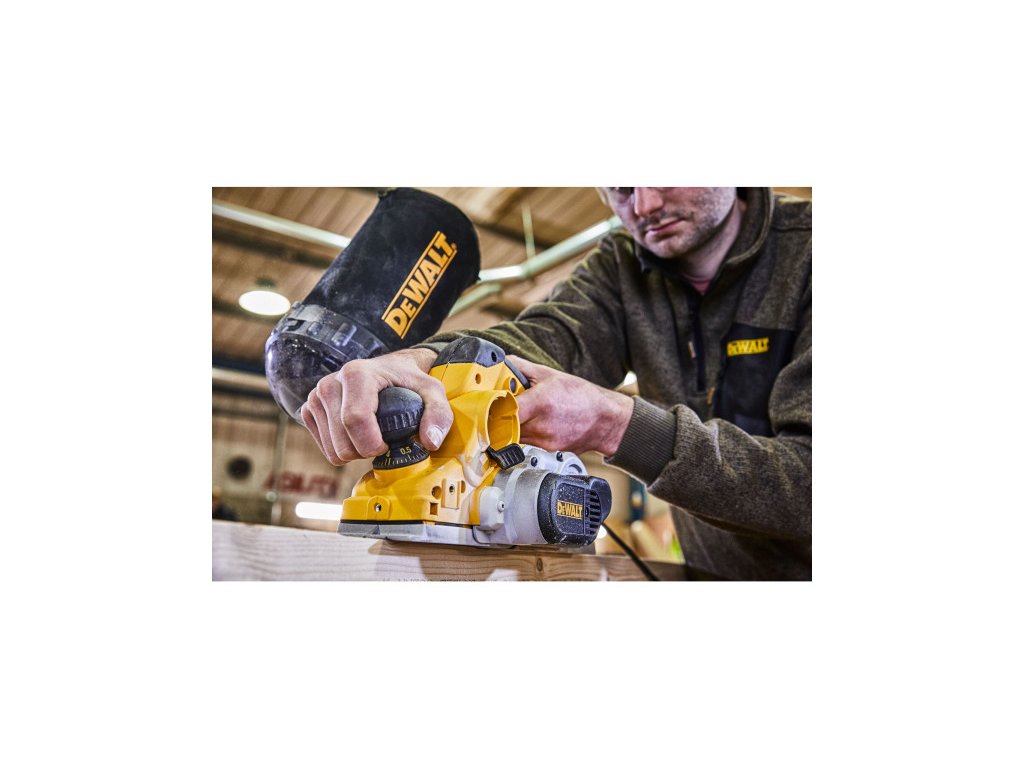 Vysoko výkonný motor, ktorý poskytuje najlepšie výsledky pri práci s tvrdým drevom Nastaviteľný pravý alebo ľavý odvod triesok S tvrdokovovým nožom, obojstranným ostrím, paralelným dorazom, odsávacím adaptérom Technické údaje Výkon (W) 1050 Hĺbka hobľovania (mm) 4 Šírka hobľovania (mm) 82 Hĺbka ryhovania (mm) 25 Dĺžka základne (mm) 320 Priemer valca (mm. ) 64 Voľnobežné otáčky (f/p) 13500 Hmotnosť (kg) 4