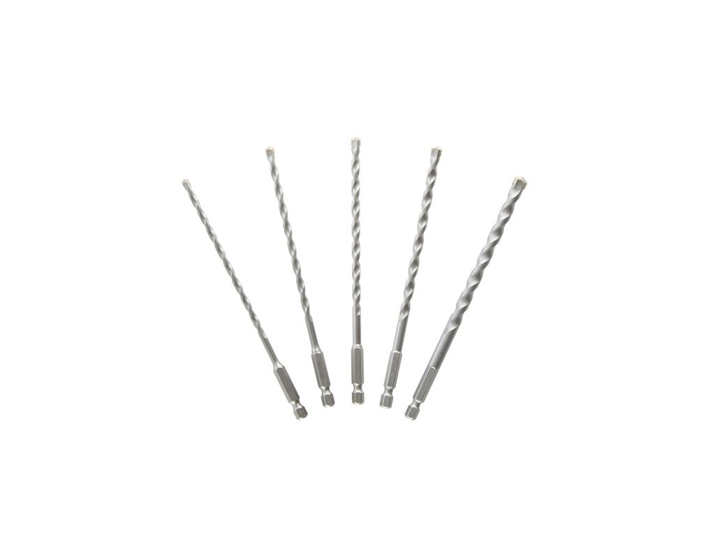 QUICK CONNECT - Spojenie so šesťhrannou stopkou HARD HEAD - Umožňuje rýchlejšie vŕtanie a dlhšiu životnosť APLIKÁCIE - Vhodné pre drevo, plasty, betón, tehly, ľahké stavebné materiály, viacvrstvové materiály a murivo V rázových skrutkovačoch je možné použiť multimateriálové vrtáky pripravené na nárazy a sú vhodné na drevo, plasty, betón, tehly a ľahké stavebné materiály, na viacvrstvové materiály a na murovanie 5-dielna súprava vrtákov