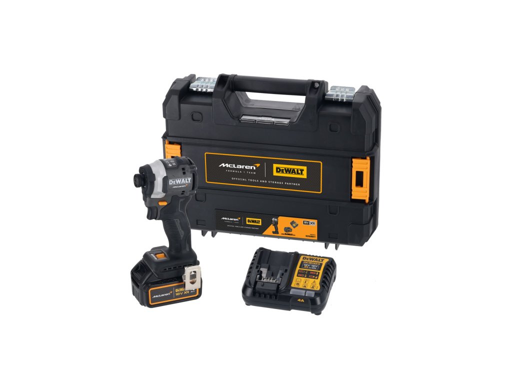 DEWALT/McLaren Akumulátorový rázový uťahovák 18 V 1/4" 205 Nm (1 x 4,0 Ah akumulátor + nabíjačka + TSTAK) DCF85MM1T